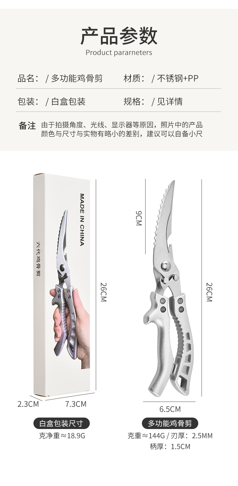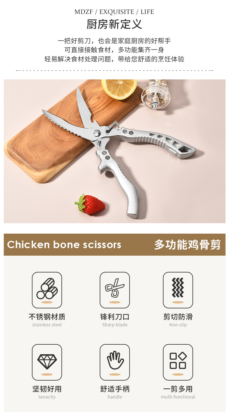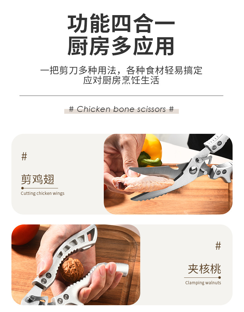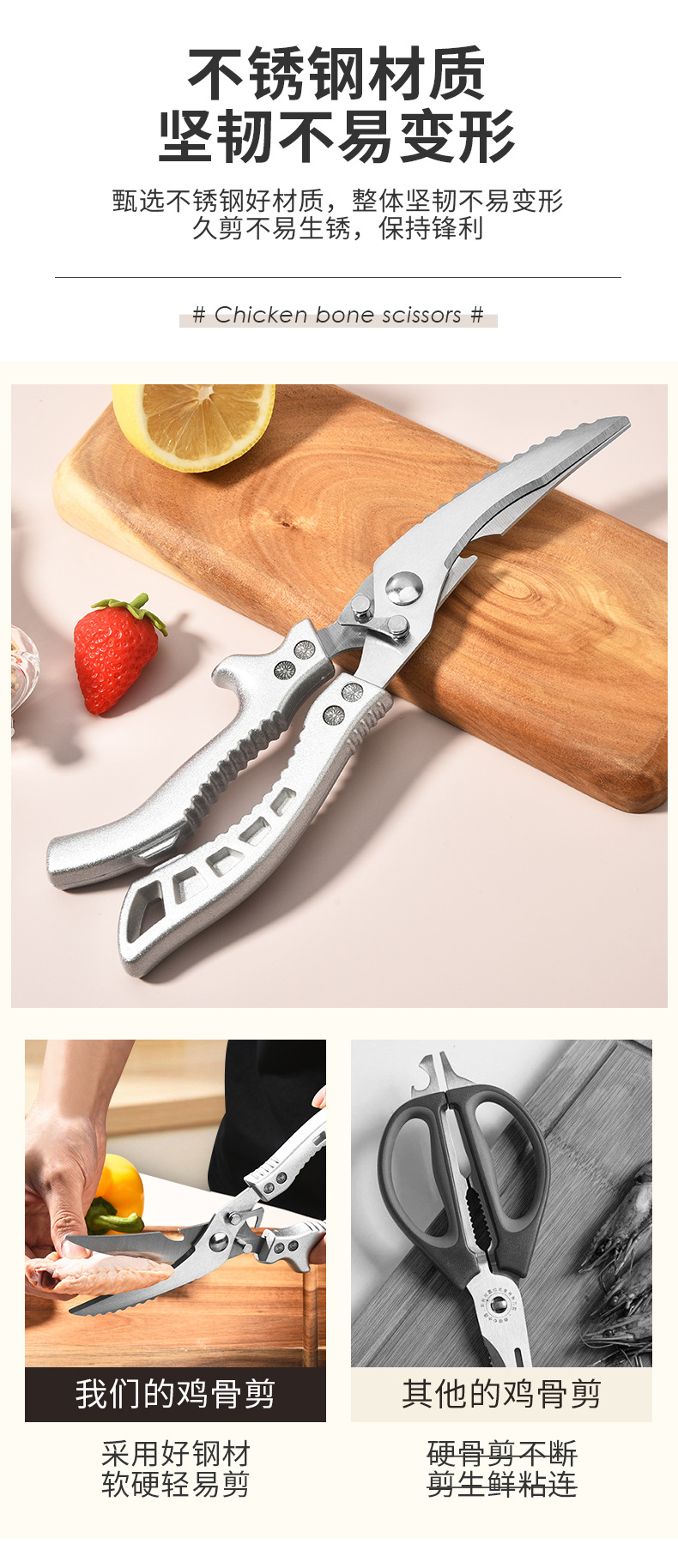 鸡骨剪不锈钢高硬度锋利厨房剪骨头鱼鳞不锈钢多功能强力去骨剪刀