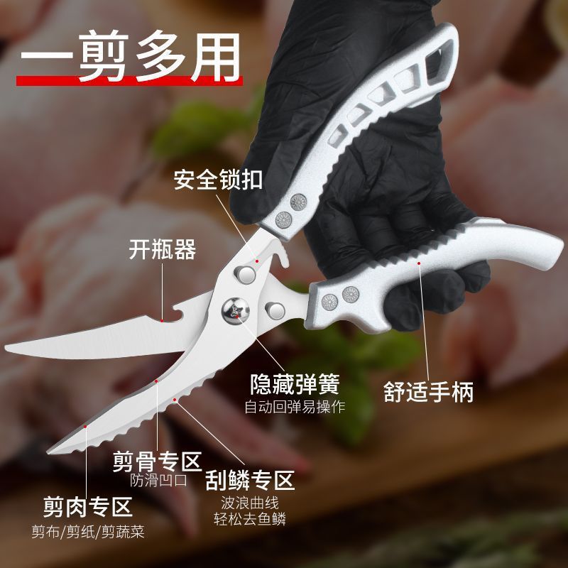 高硬度不锈钢强力鸡骨剪刀厨房多功能家用剪骨头剪杀鱼鸡鸭鹅剪刀