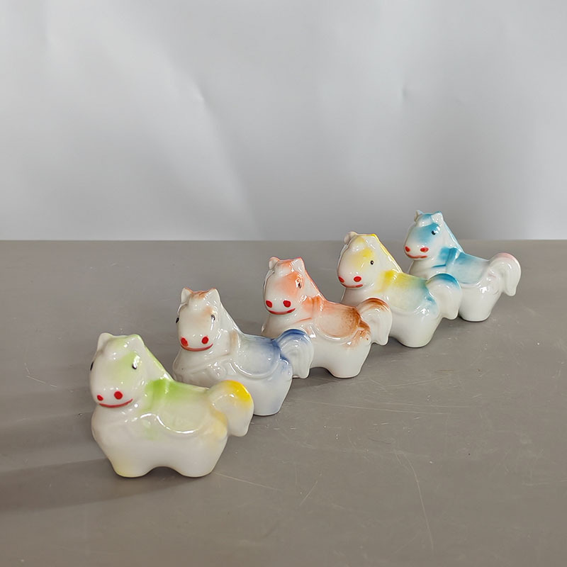かわいい馬と馬の陶器工芸品小さな装飾品幸運の馬箸ホルダーポニー箸ホルダーペンホルダーホーム装飾品