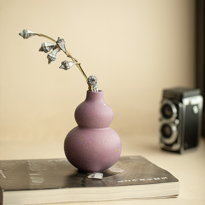 手工洒金陶瓷葫芦小花插花瓶茶室茶桌装饰品招财摆件花器插花中式