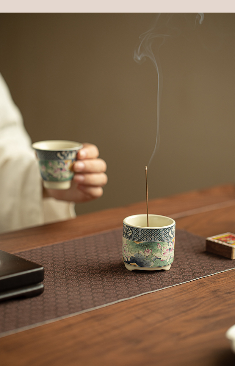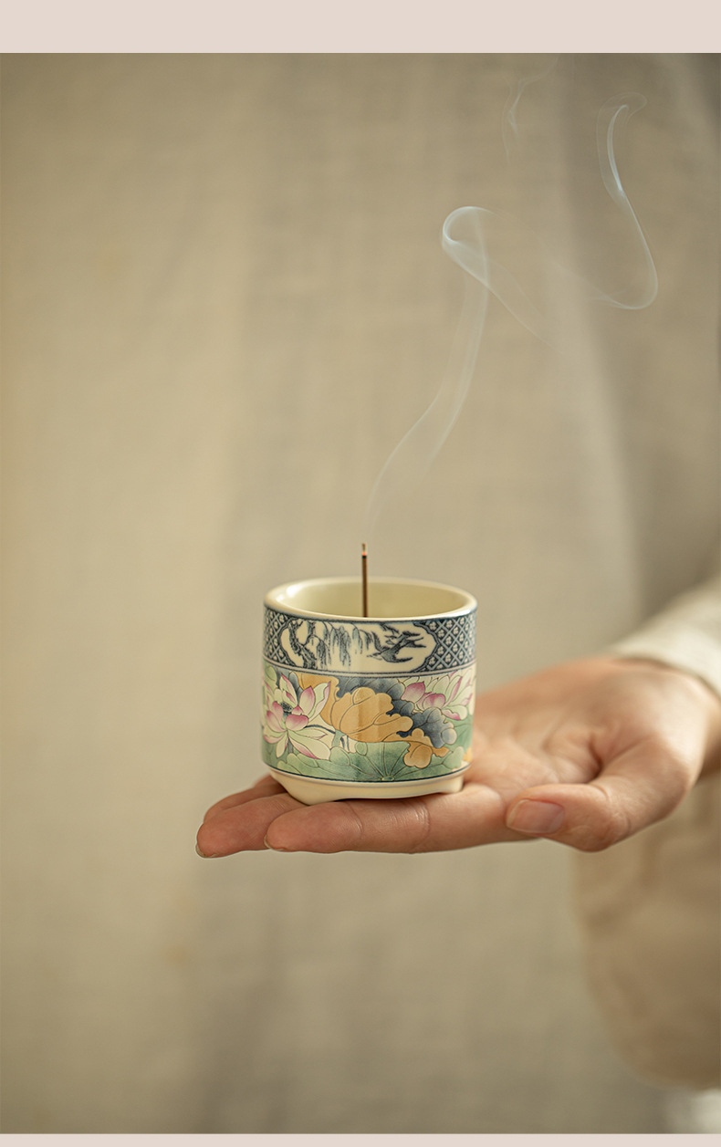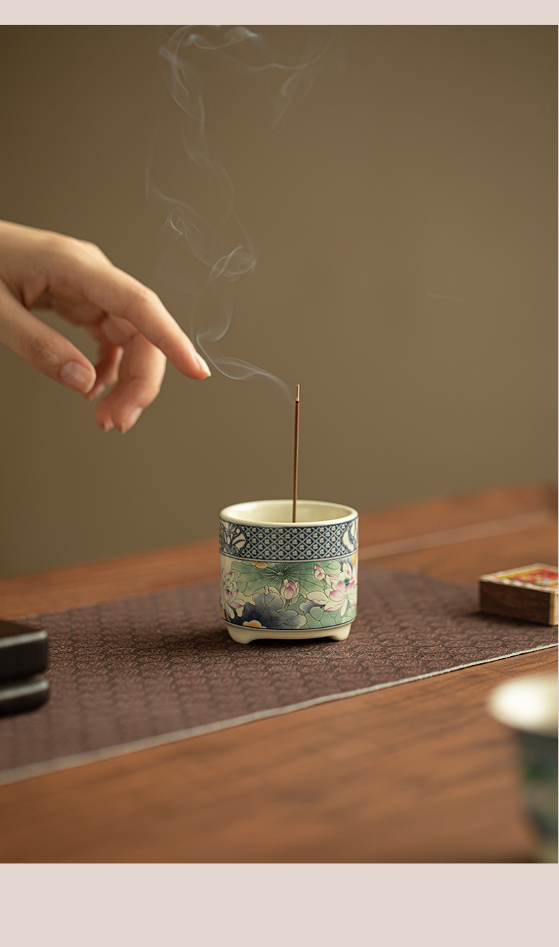 国风苏打釉荷韵香炉线香炉陶瓷茶空间香道茶桌摆件装饰功夫茶具
