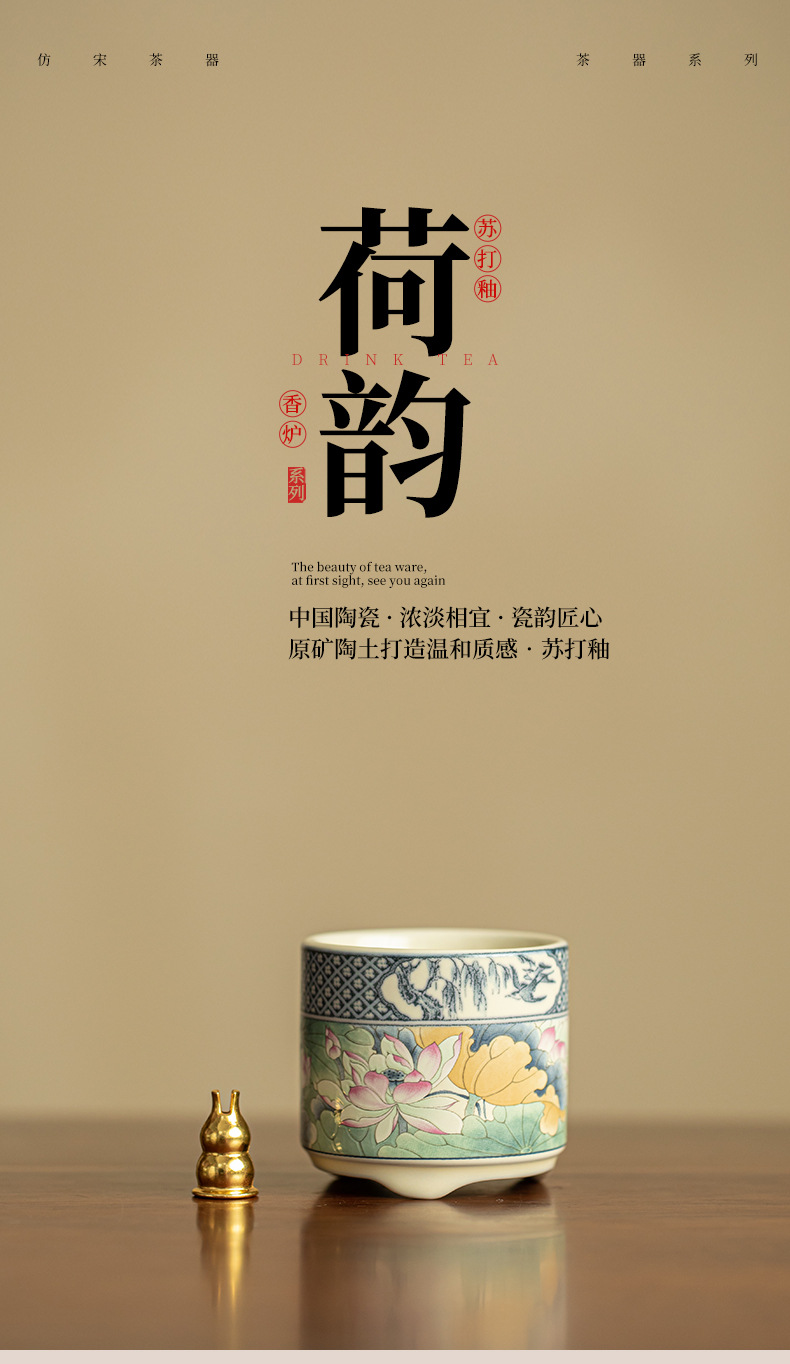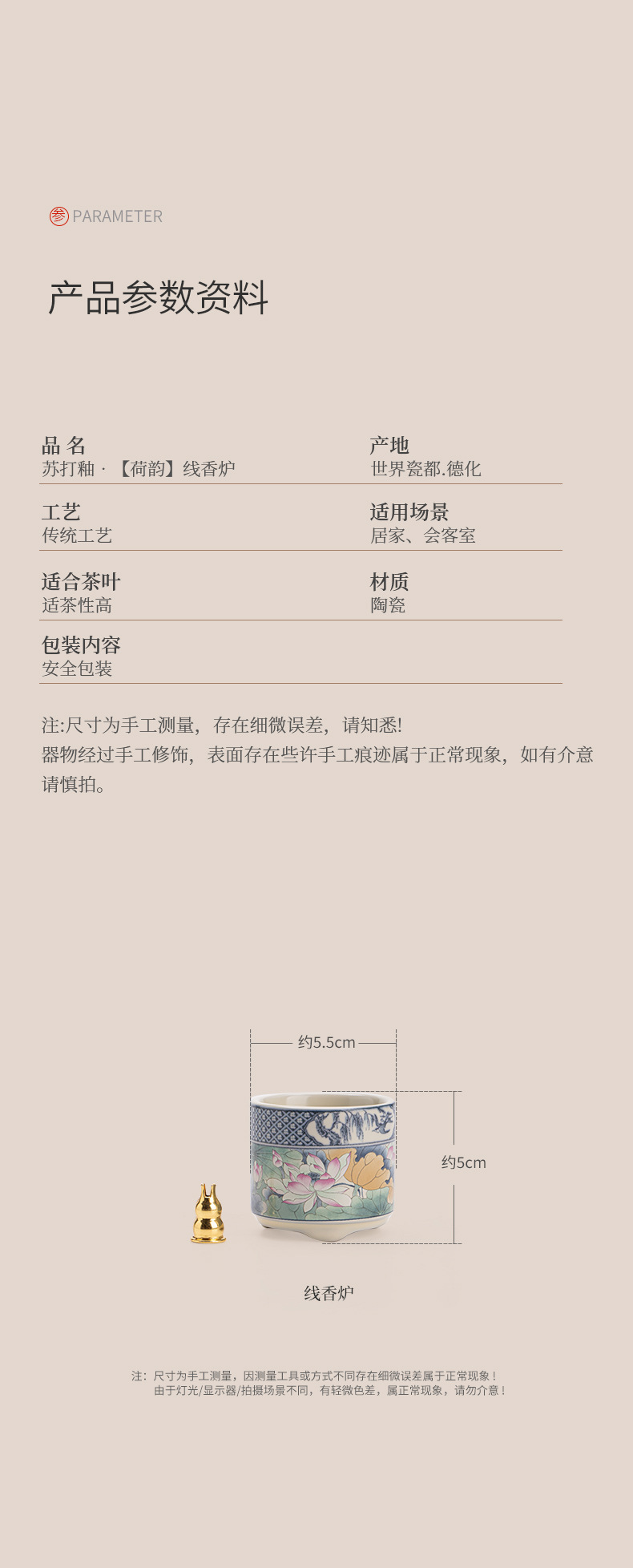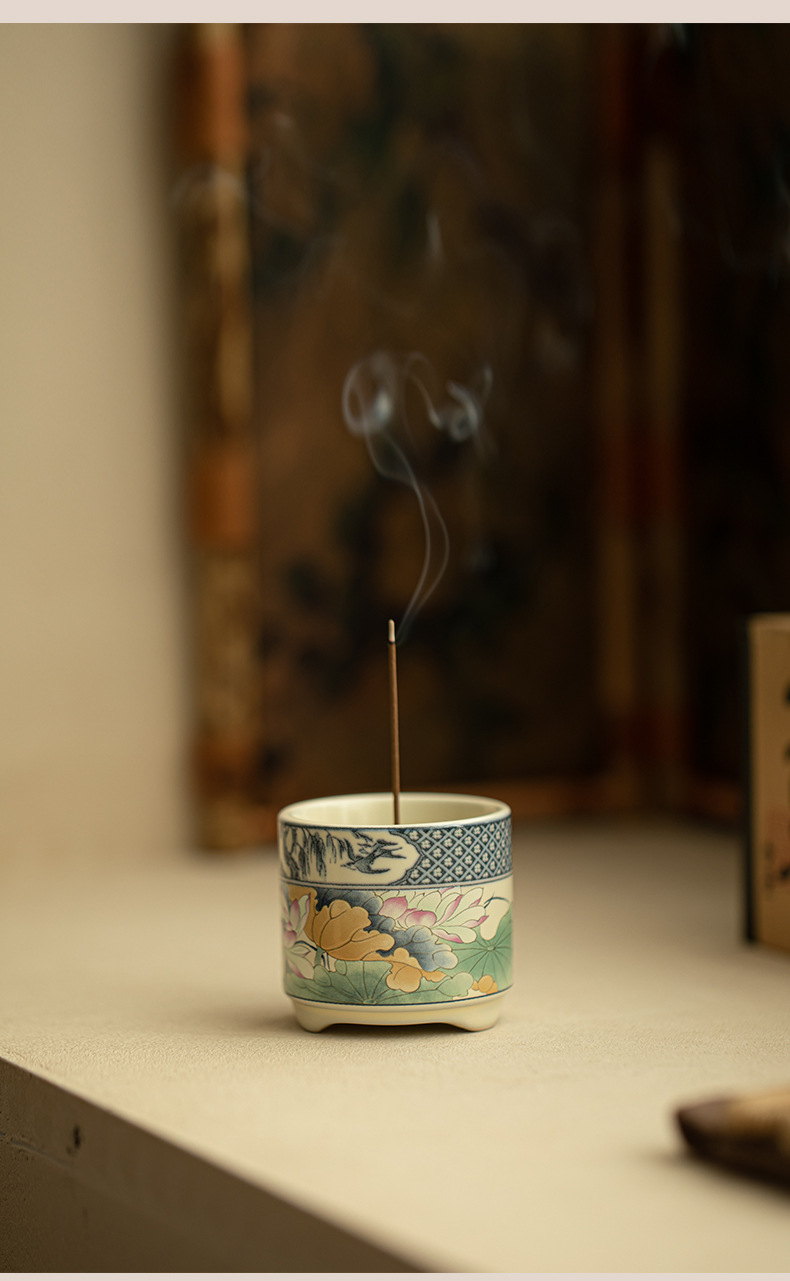 国风苏打釉荷韵香炉线香炉陶瓷茶空间香道茶桌摆件装饰功夫茶具