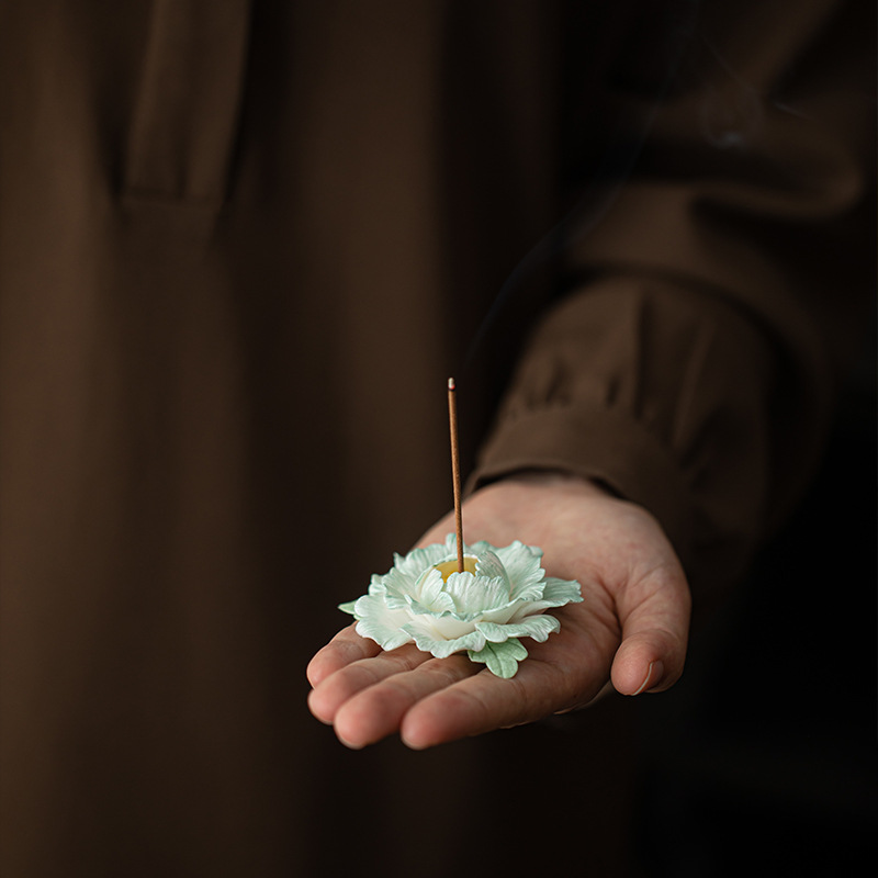 創意陶磁器の手は牡丹の花の香りをつまんで家庭の線香座の客間の茶室の装飾の工芸品の線香を挿して香炉を挿します。