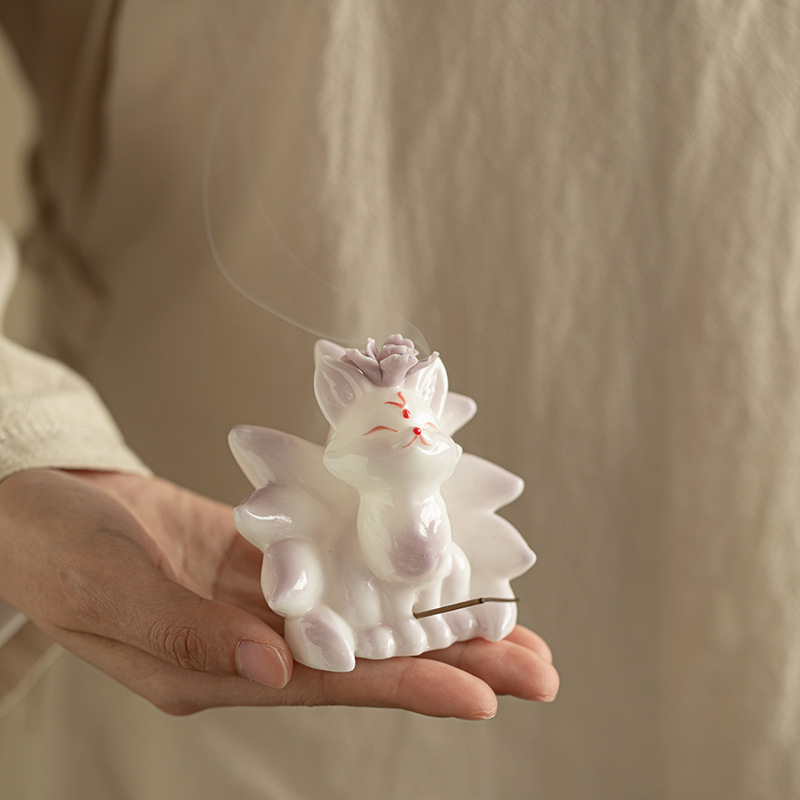 原创手工可爱九尾狐陶瓷捏花香插香薰炉摆件茶桌香炉茶道品香盖置