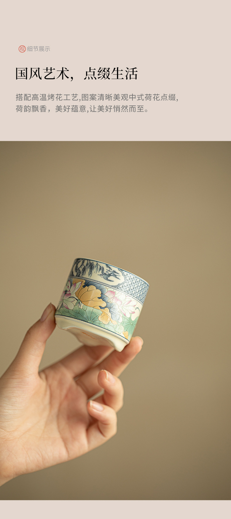 手作り瑠璃粉蓮花品茗杯女史主人杯高足花弁聞香杯焼酎杯軽豪華カップ