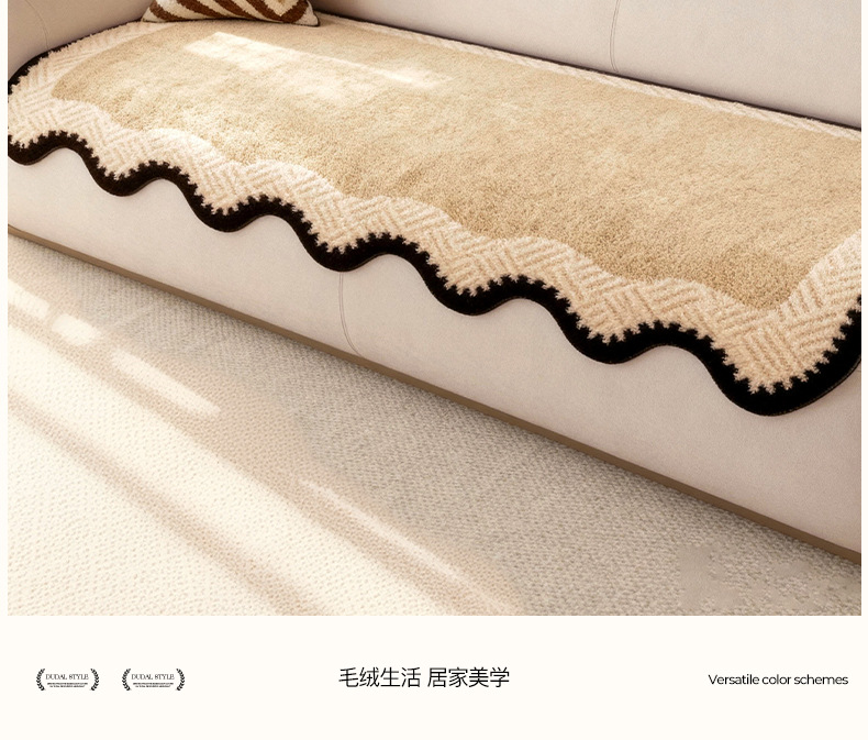 冬季高级感防滑盖布巾不规则加厚毛绒坐垫直排一片式兔兔绒沙发垫
