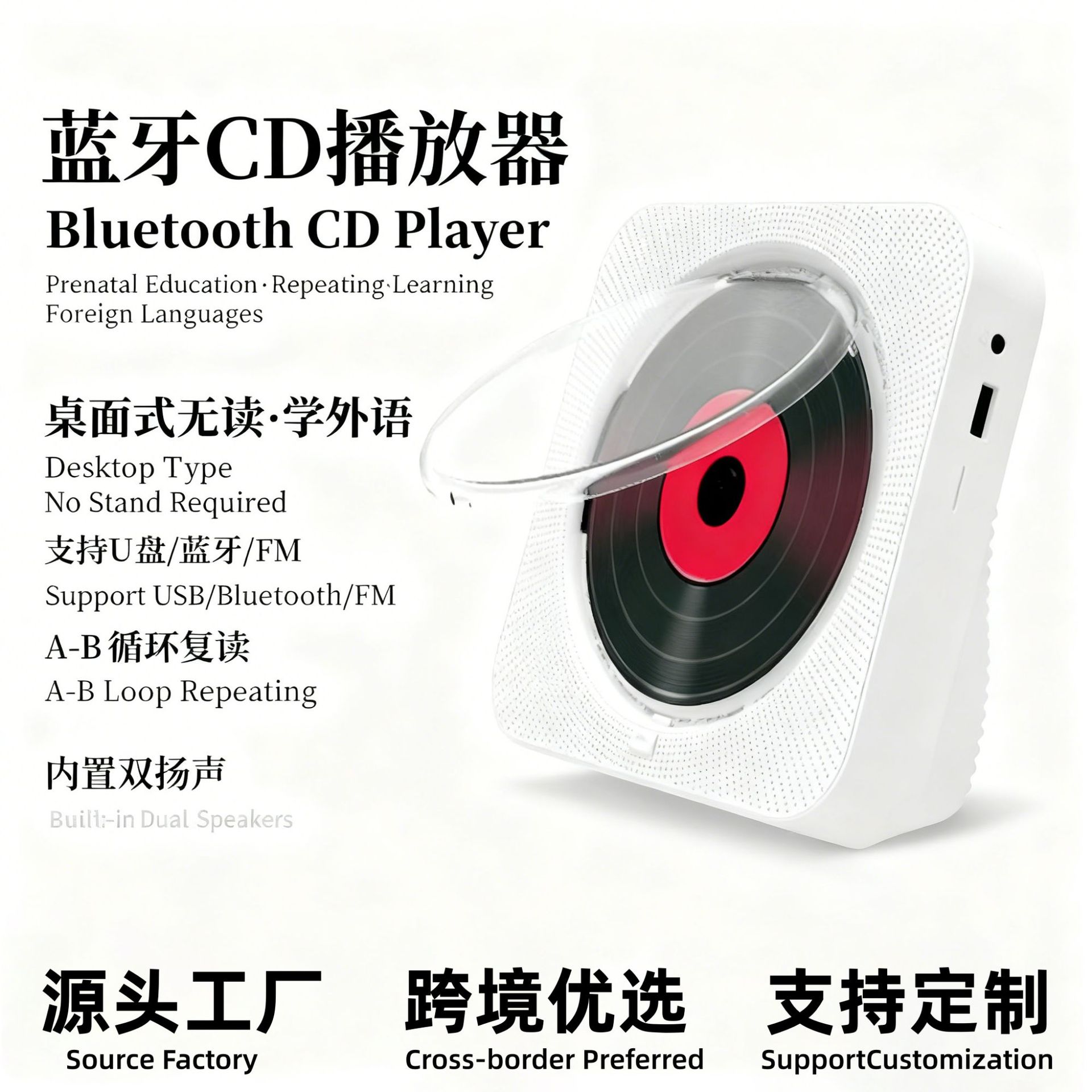 跨境立式英语复读CD播放器双扬声器桌面儿童早教CD机无线蓝牙音箱