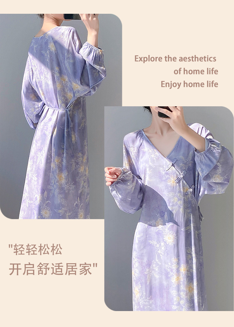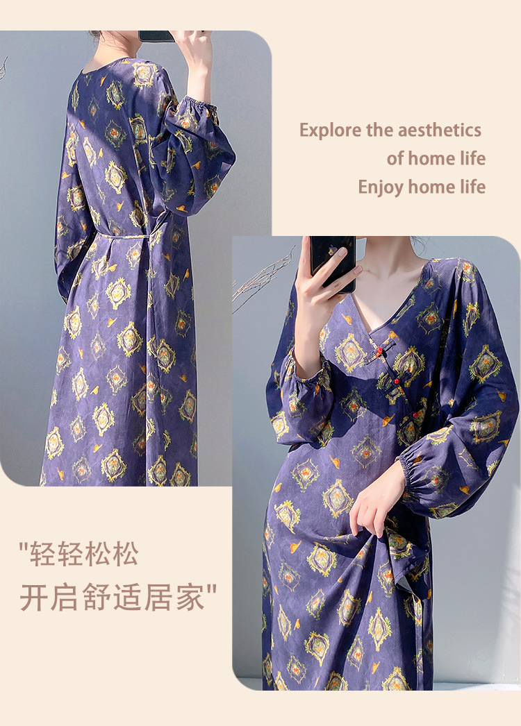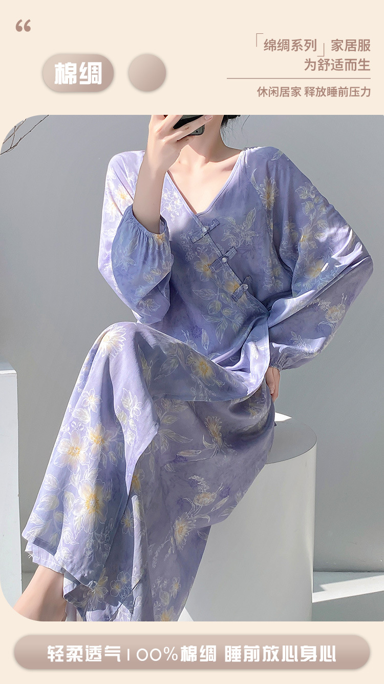 棉绸世家盘扣碎花睡裙女春夏季宽松薄款睡衣简约舒适国风家居服女