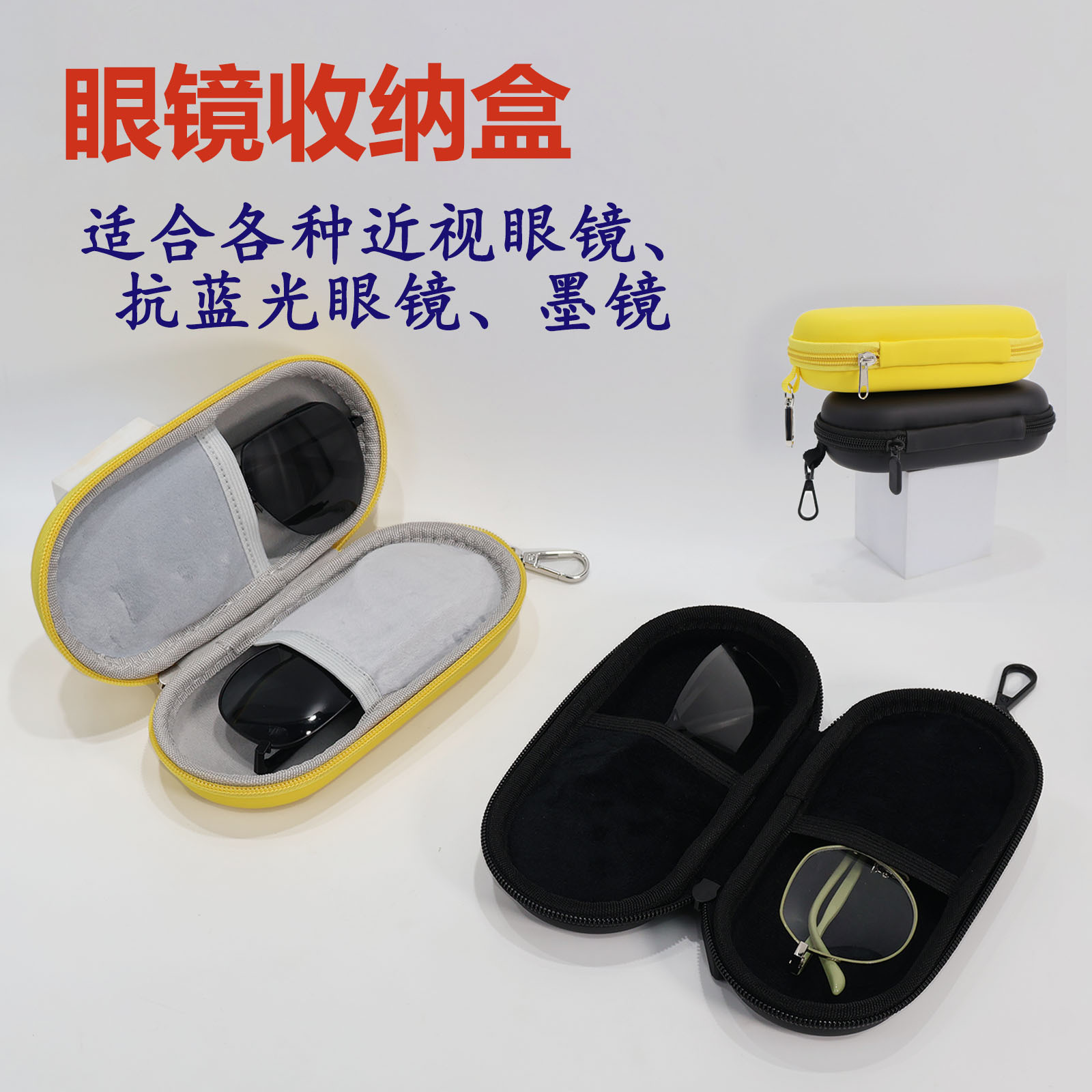亚马逊现货尼龙带挂钩定型眼镜盒男女创意皮革防尘眼镜收纳包挂包