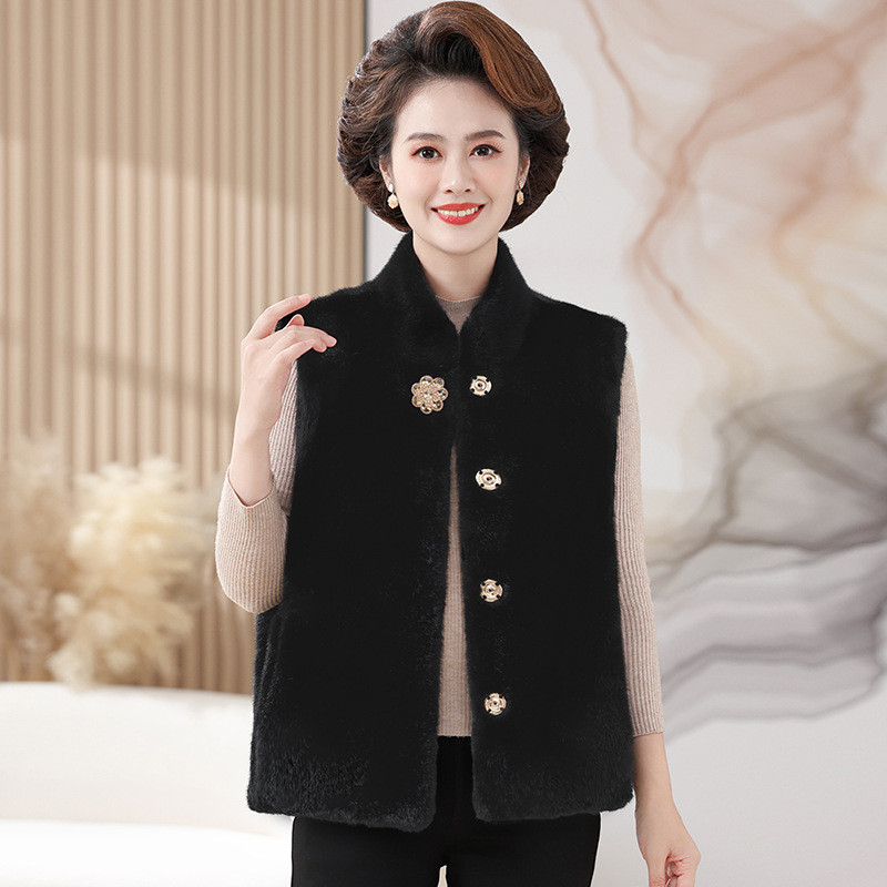 2025新款中老年国风皮毛一体大衣新中式妈妈秋冬装仿貂绒皮草外套