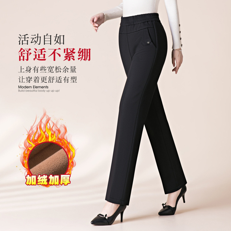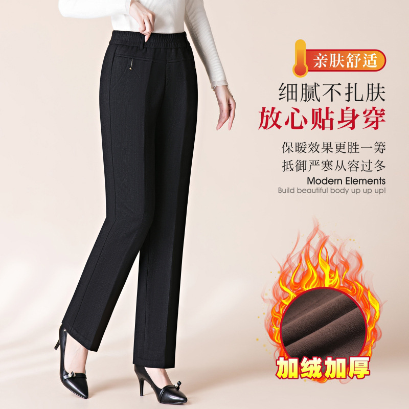 ストレートショットのズボンのカジュアルなズボンの女性2024冬の錦包綿の弾力性の高い腰の中年のお母さんのタバコの管のズボンの長いズボン