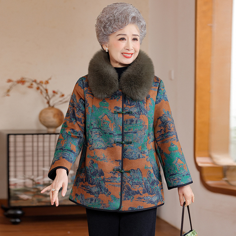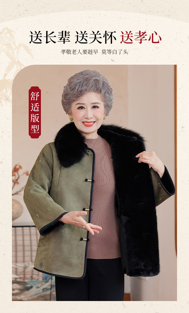 奶奶冬装皮草外套中老年人皮毛一体妈妈加厚老太太新中式国风大衣