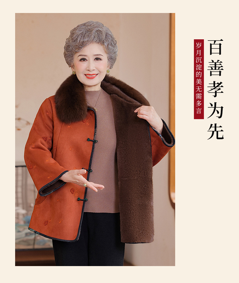 2025年妈妈冬装高端皮毛一体外套仿皮草洋气国风中老年仿皮绒大衣