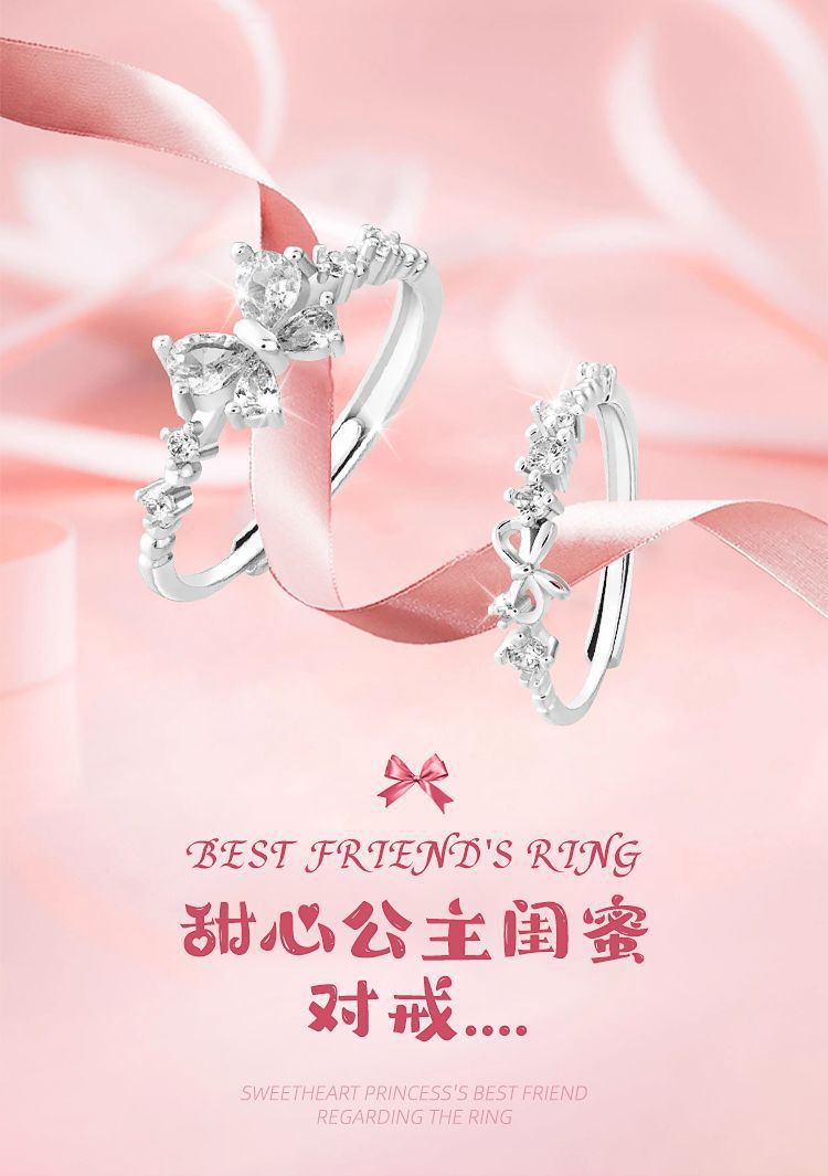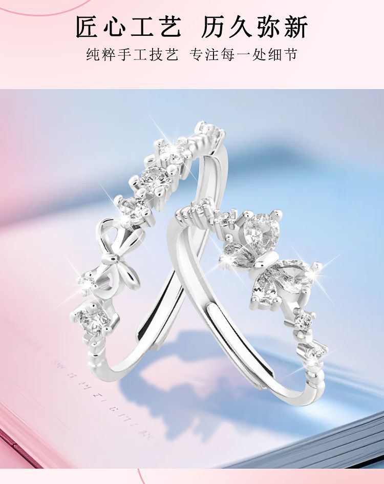 闰蜜戒指甜心公主蝴蝶戒指女ins小众轻奢简约闺蜜食指戒甜美超仙