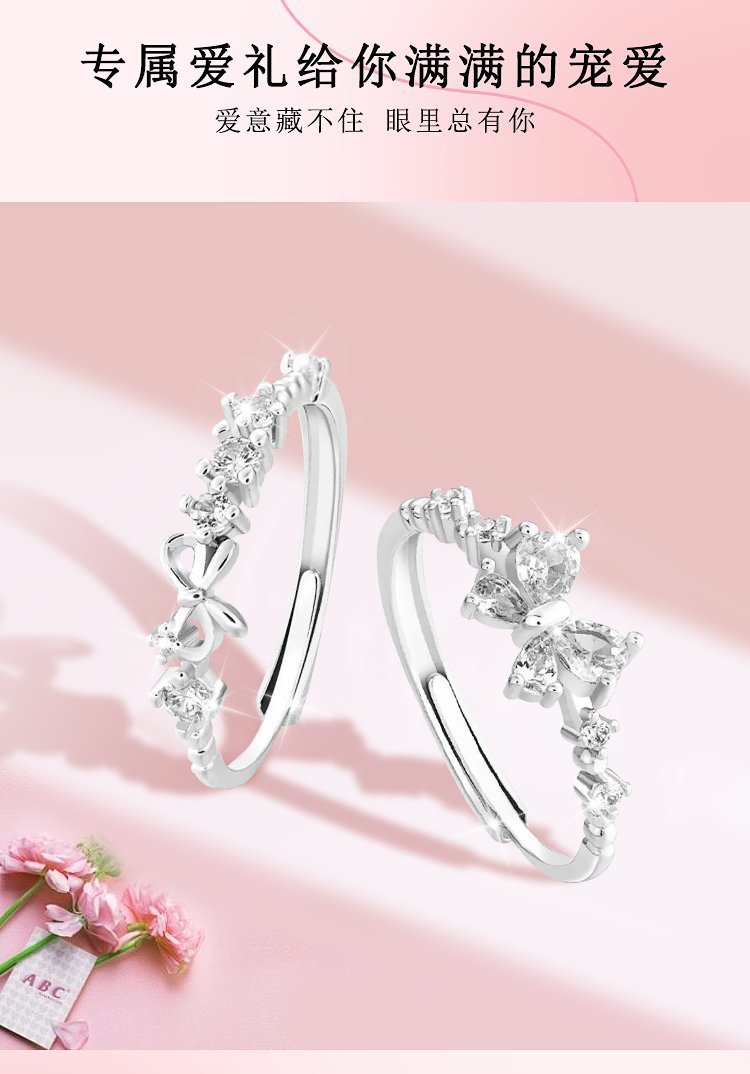 颜色 光身蝴蝶结戒指,锆石蝴蝶戒指