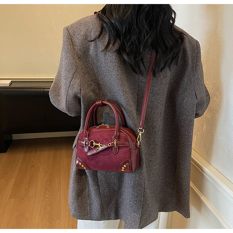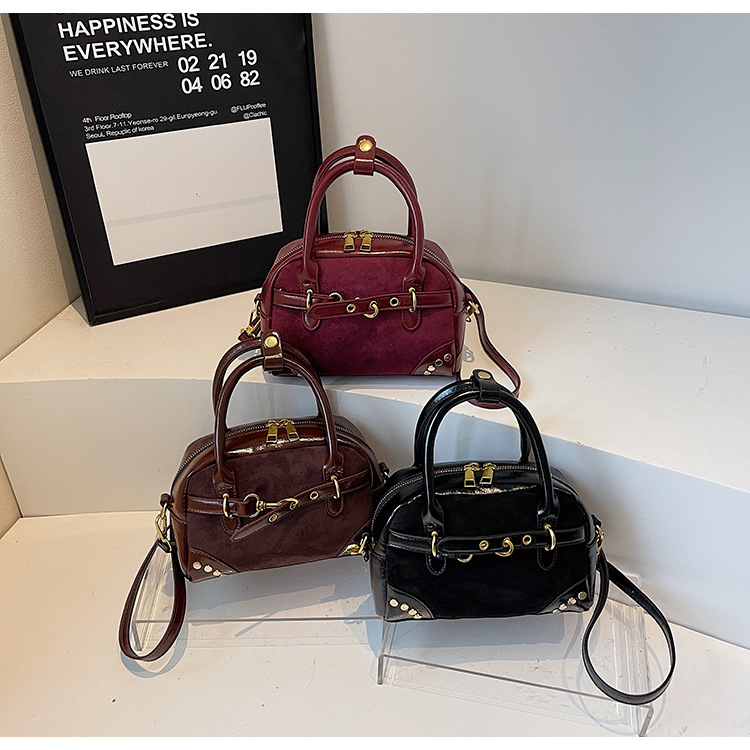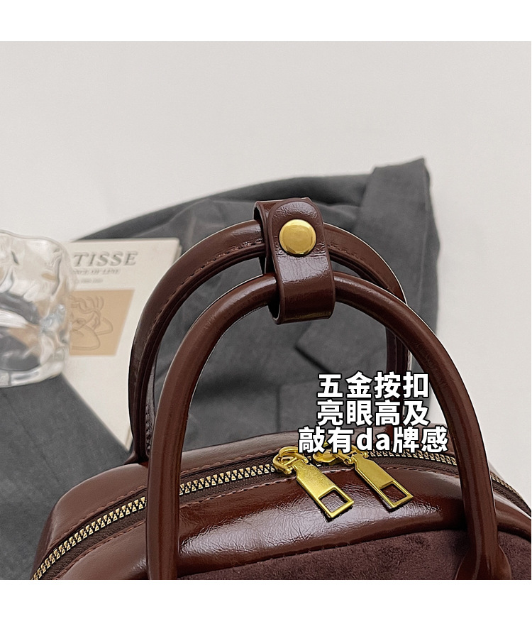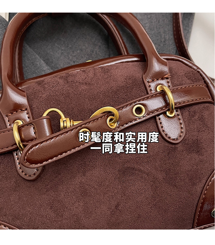 韩国小众磨砂手提水桶包女2025秋季新款麂皮绒复古百搭单肩斜挎包