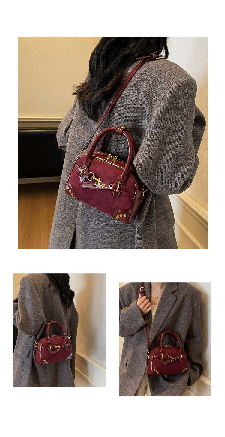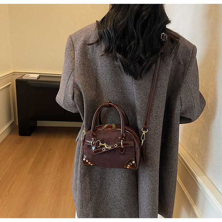 韩版小众铆钉手提贝壳包包女2025冬季新款高级质感洋气单肩斜挎包