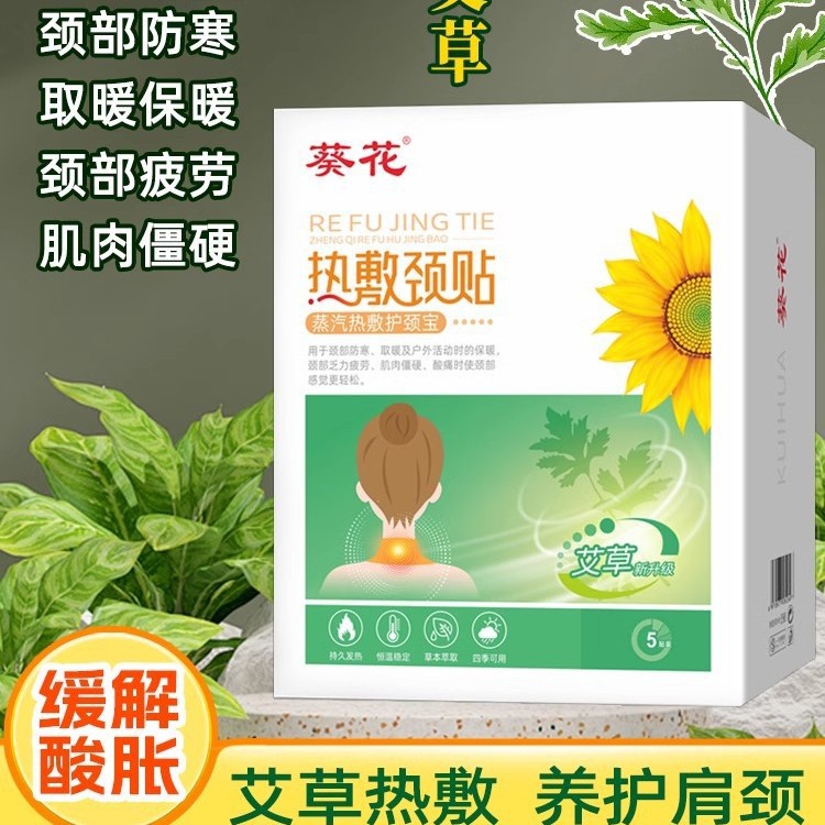 ひまわり頚椎温湿布パッチ、ハーブヨモギネックウォーマーパッチ、肩と首のスカーフ、スチーム加熱ネックプロテクター、ネックアーティファクト
