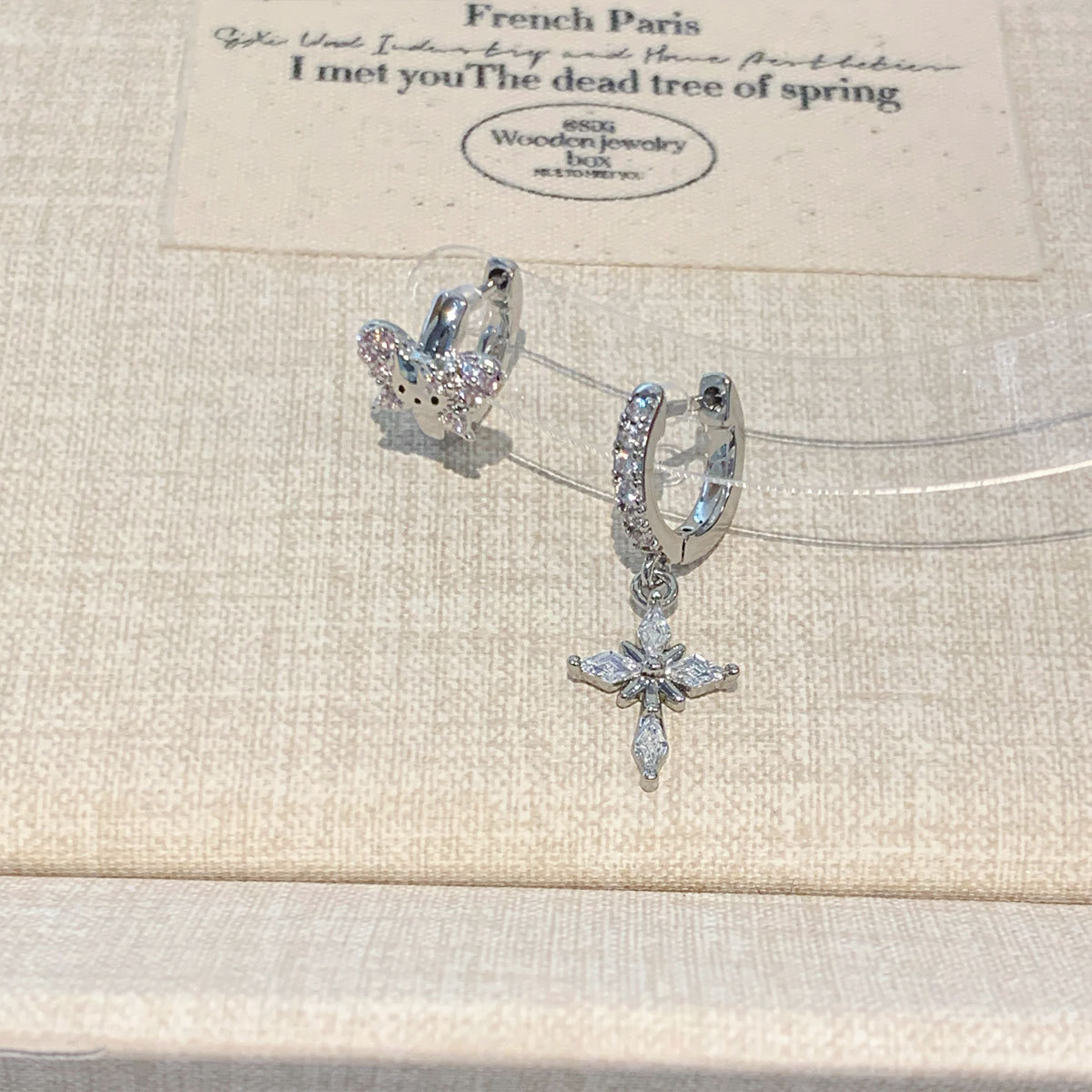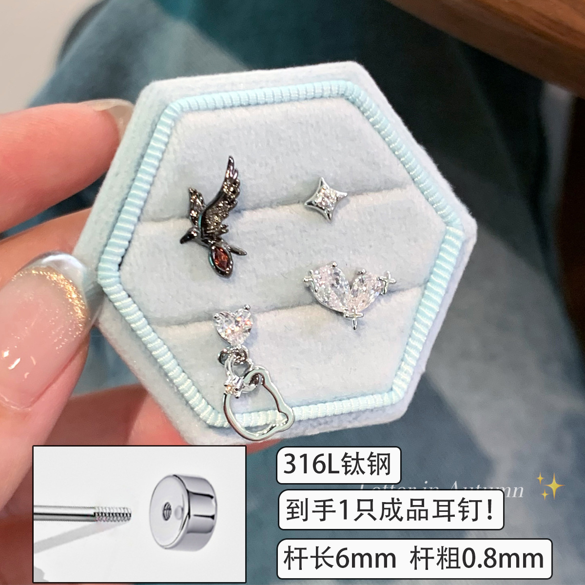 316L医用钛钢耳饰甜酷蝴蝶kt猫直杆耳扣百搭十字架锆石耳环耳圈