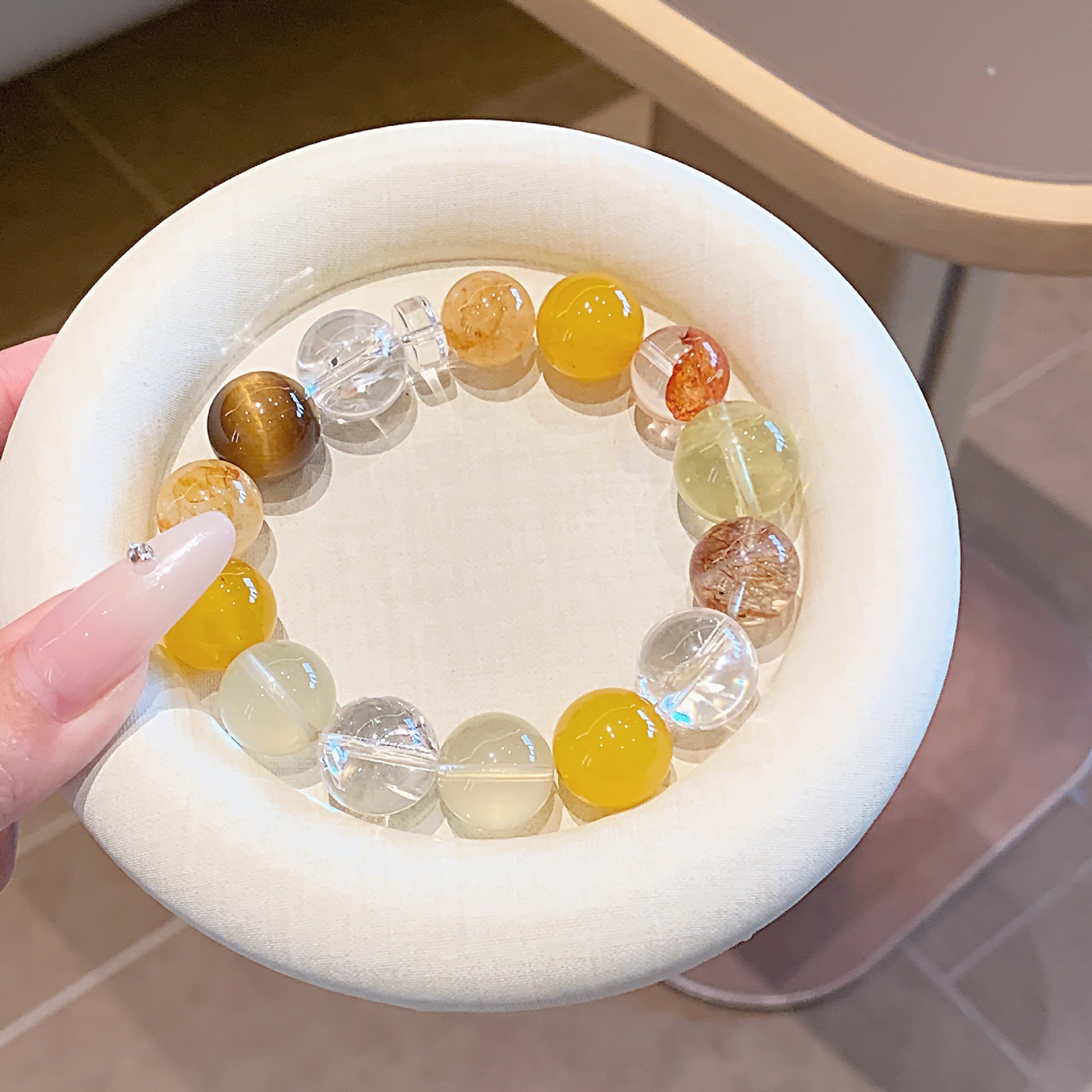 店铺的款由于珠子每一批做出来存在些许珠子大小尺寸偏差实则避免不了,均与当时收到货为准,大部分正常手围设计佩戴都是没问题,默认手围15~16。