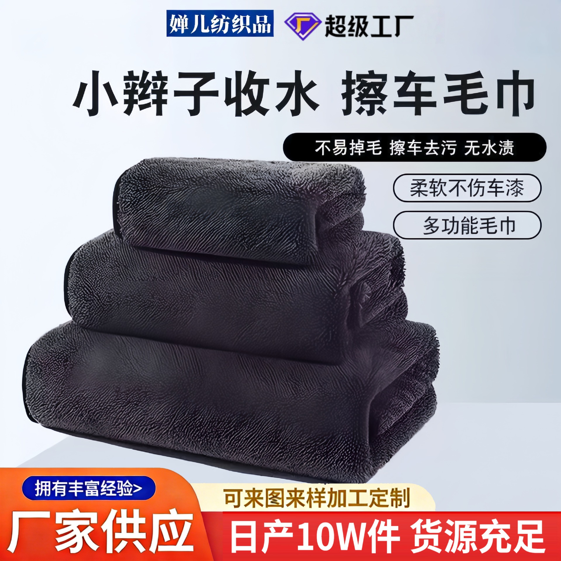 严选新品跨境小辫子擦车巾汽车擦车布专用巾吸水车用内饰洗车毛巾