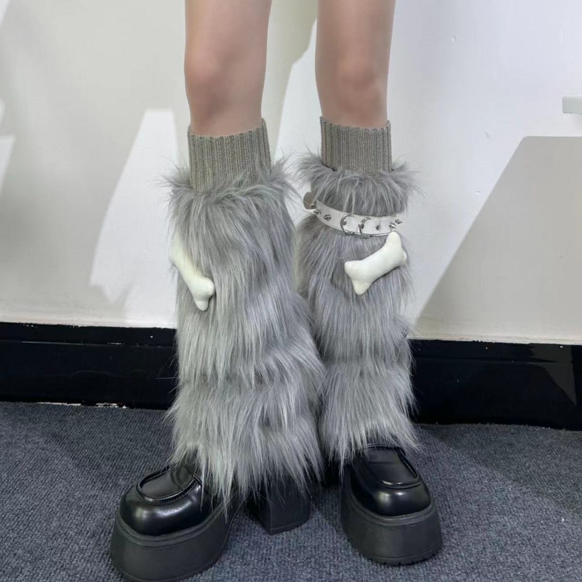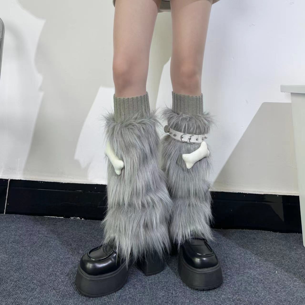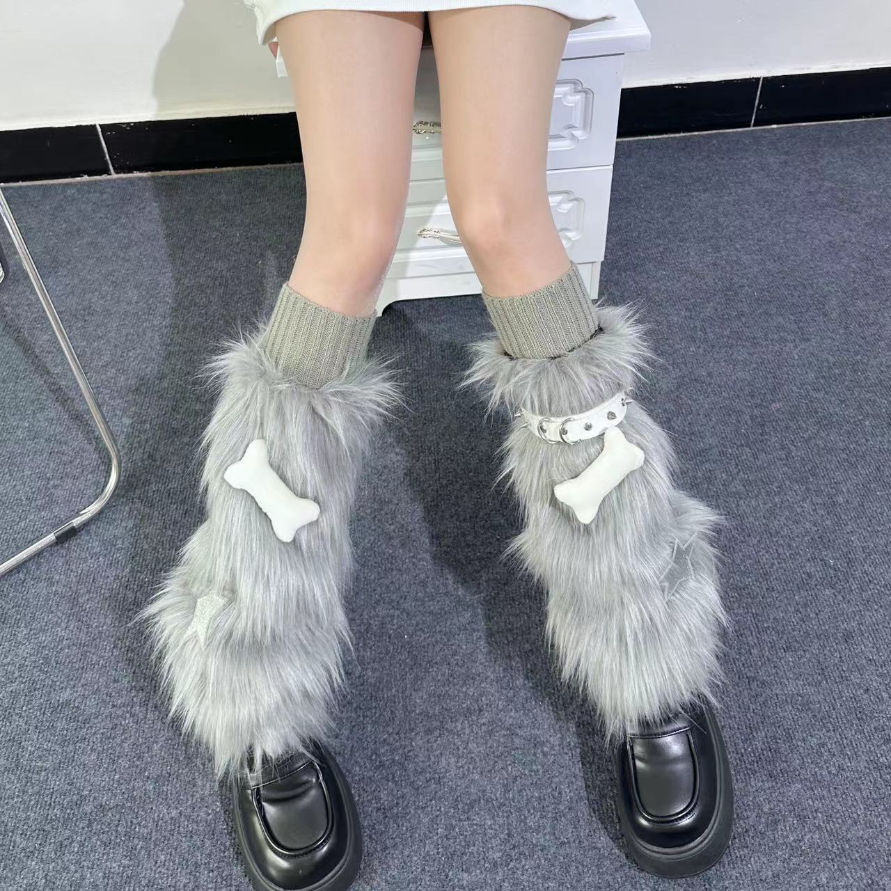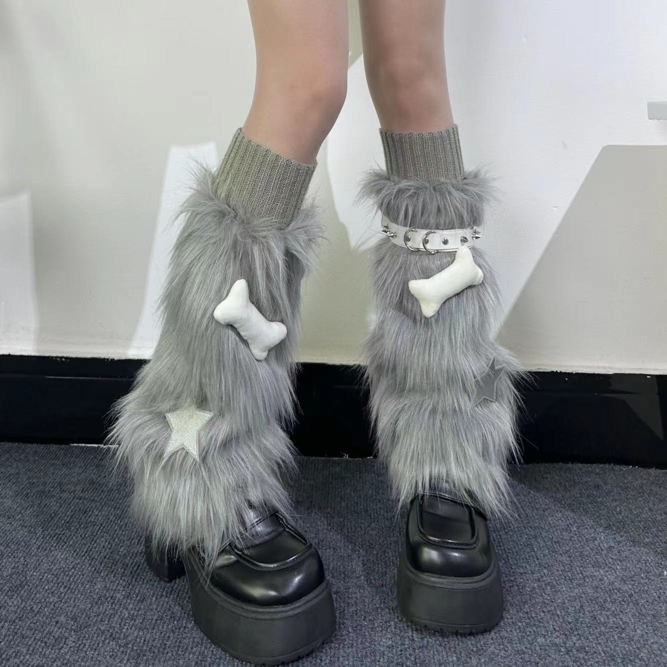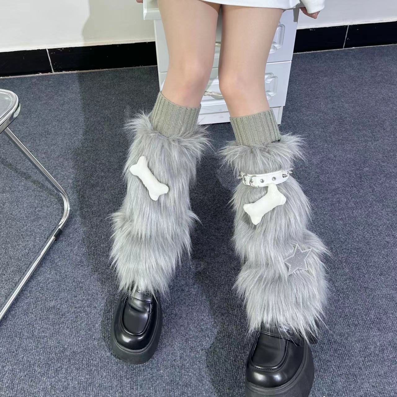 辣妹毛毛袜套高颜值仿兔毛皮草腿套亚文化中筒毛绒腿袜jk堆堆袜女