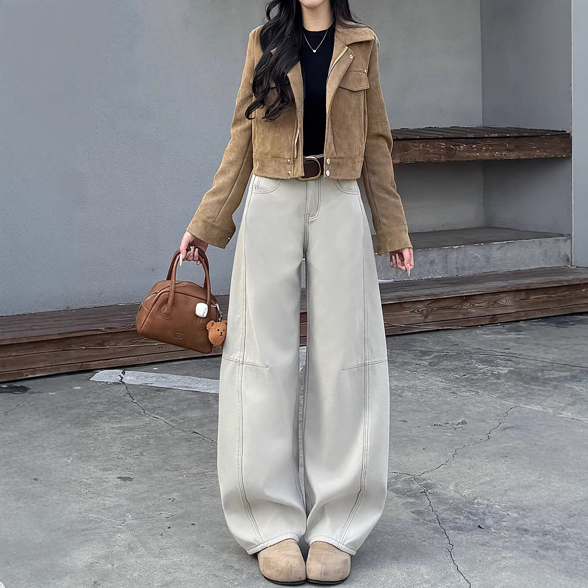 2026冬季新款女士时尚复古弯刀加绒阔腿牛仔裤女高腰宽松显瘦长裤