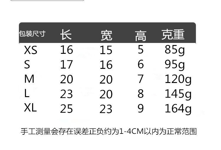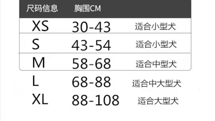 尺码 S【建议15斤内】,M【建议25斤内】,L【建议45斤内】,XL【建议60斤内】