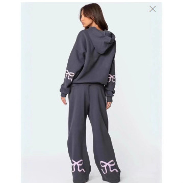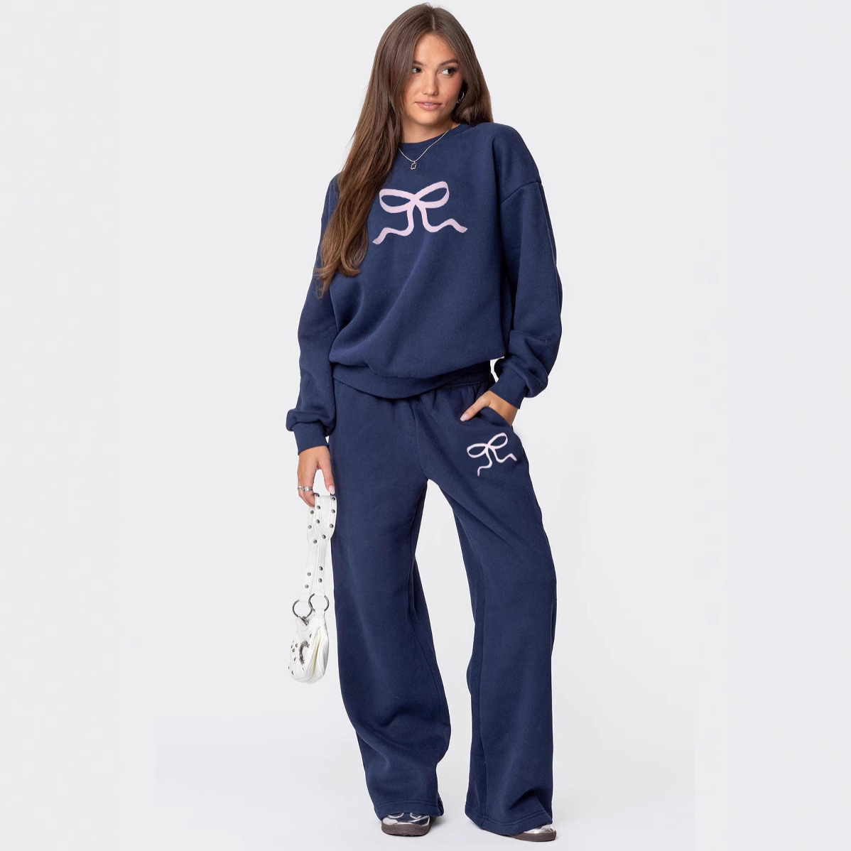 2025年最新作、海外貿易向けレディーススポーツカジュアルゆったりリボン柄プリントスウェットファッションセット(在庫あり)