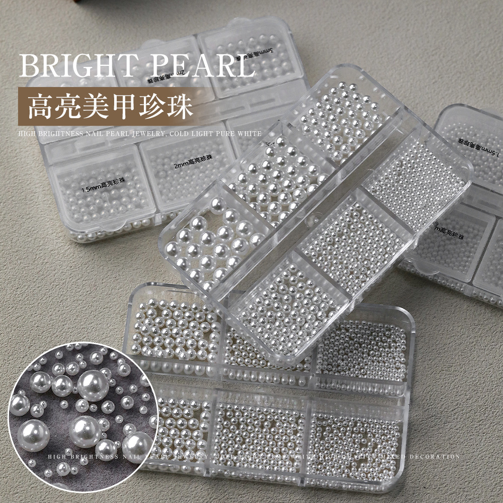 高光沢パールネイルデコレーションミックス、平底半円立体丸型無穴ホワイトパールネイルアクセサリー