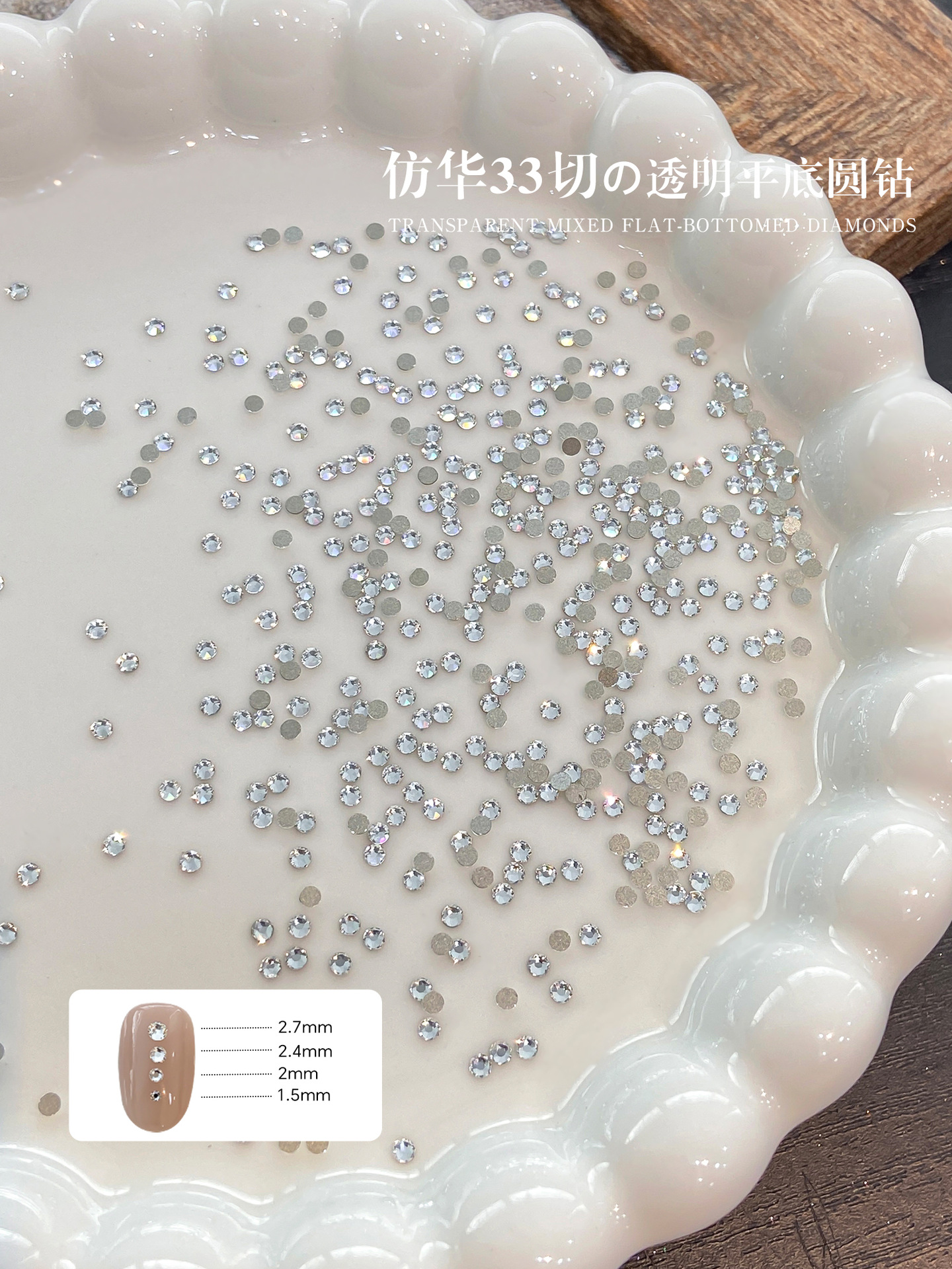 爆闪K9仿华子33切平底圆钻混装高品迷你透明堆堆钻拼钻美甲钻饰品