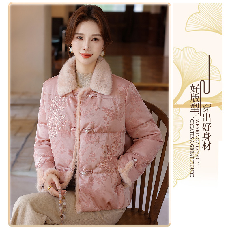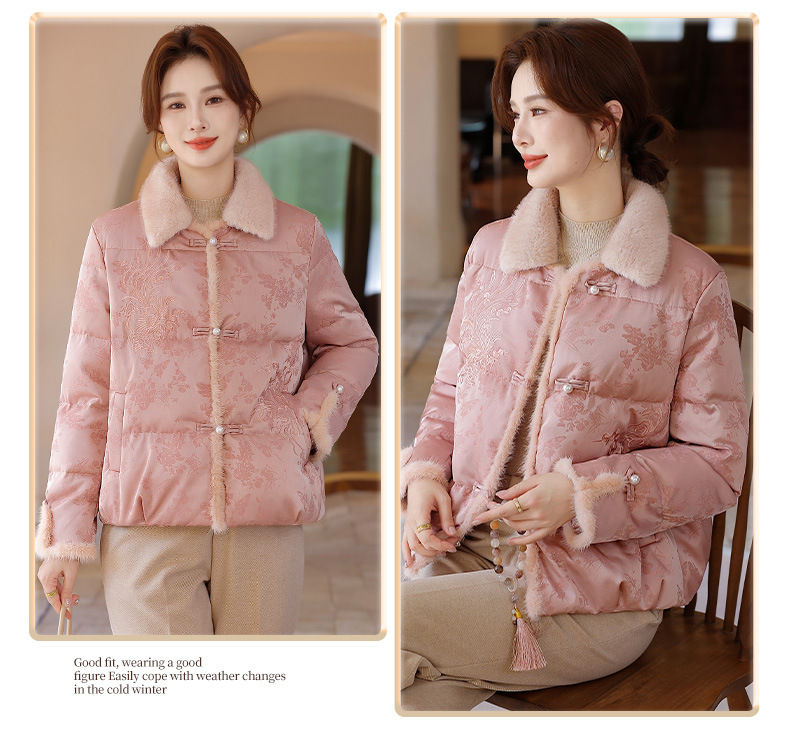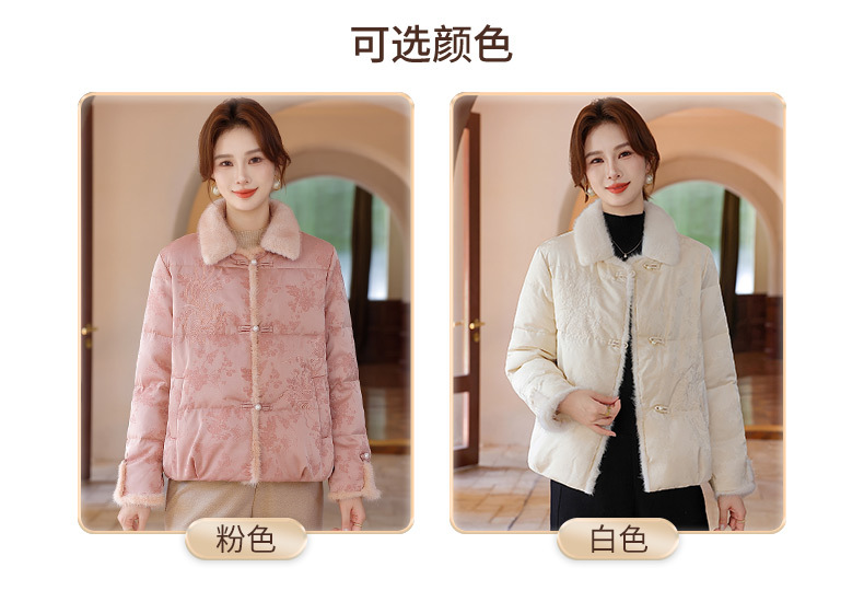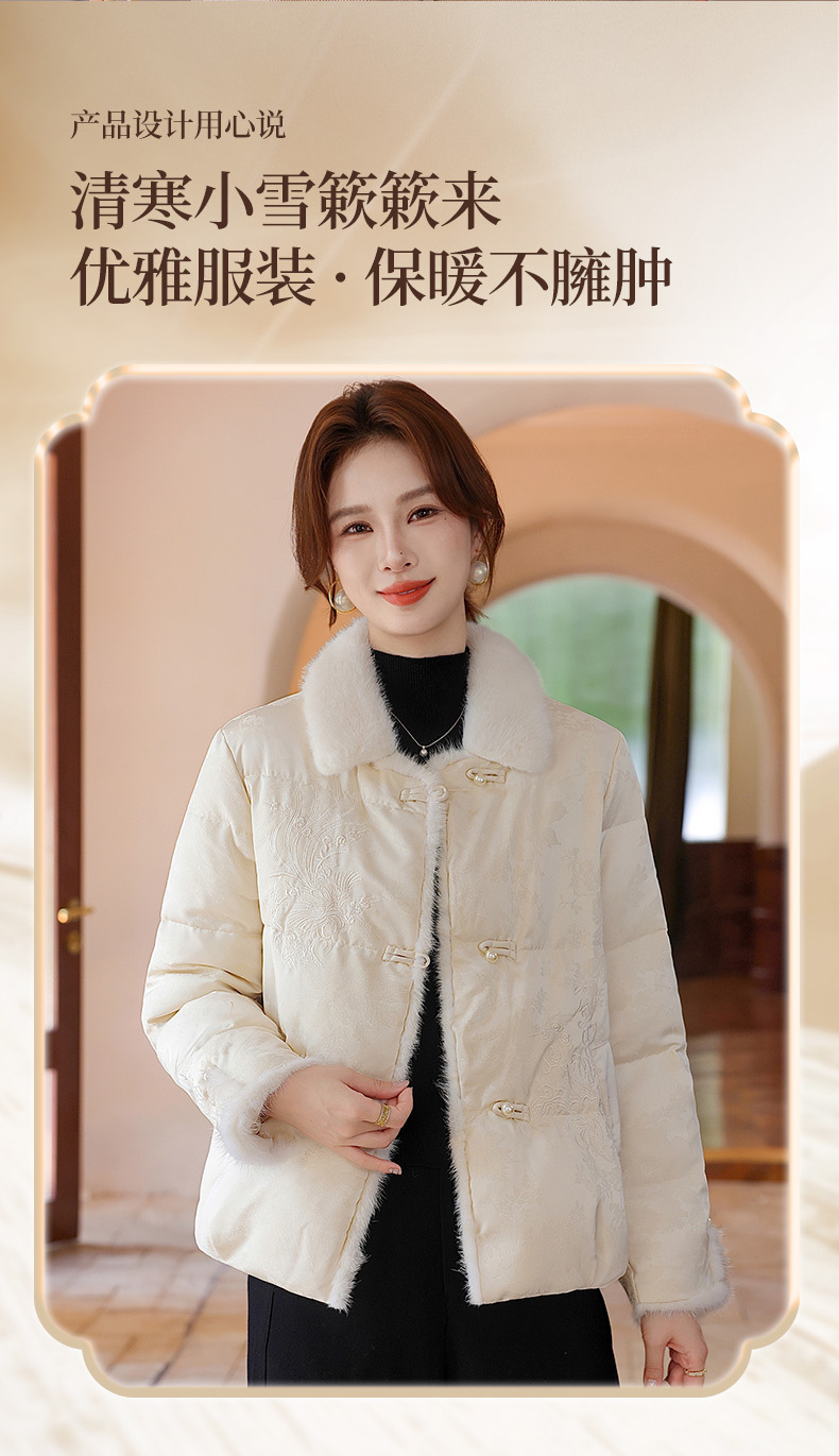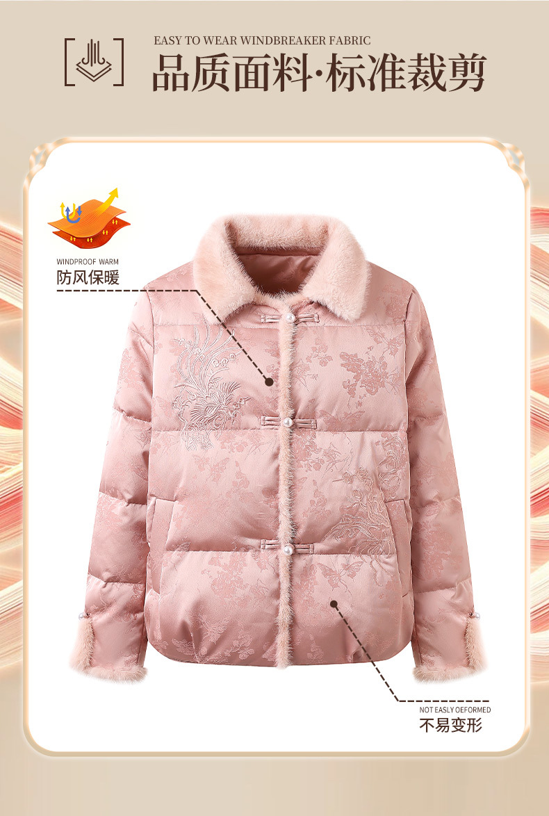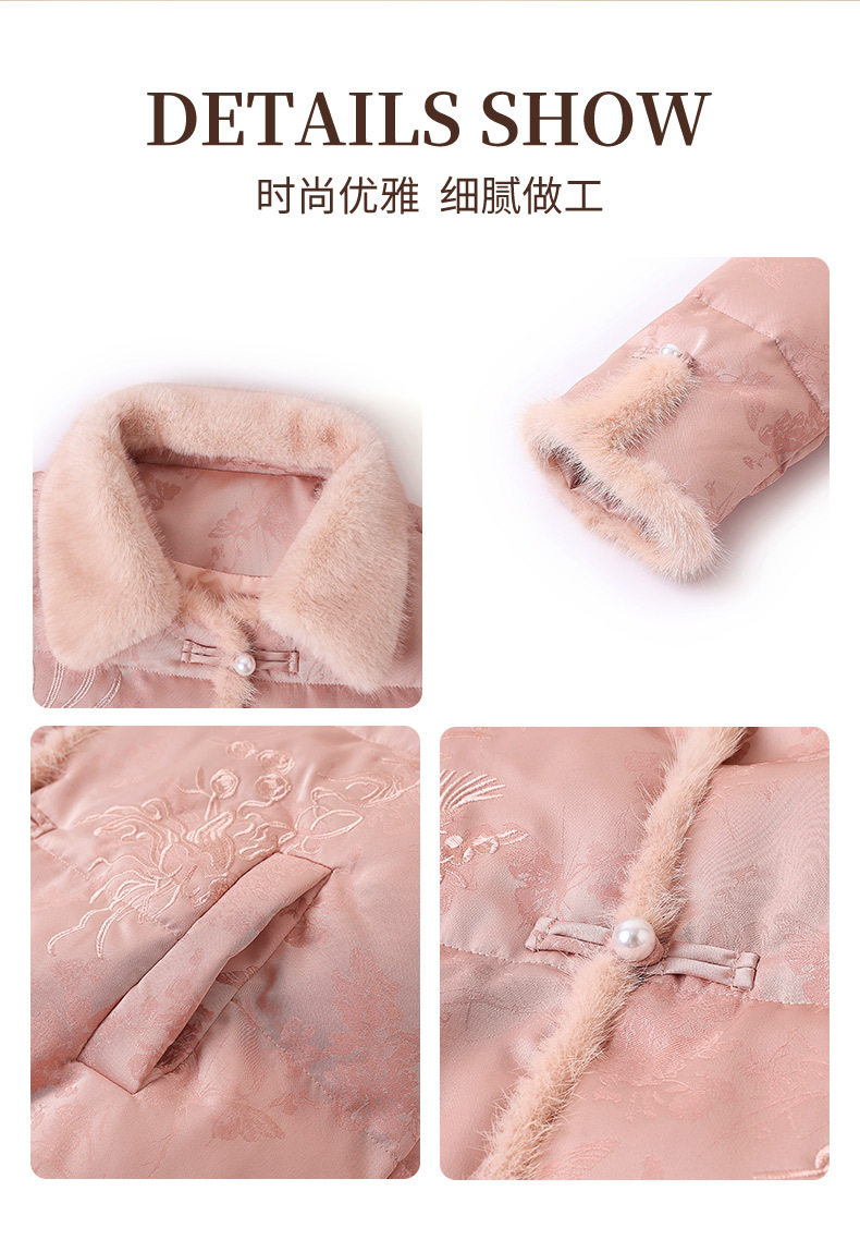新中式妈妈水貂毛拼接国风羽绒棉服中老年女冬季新款加厚棉袄外套