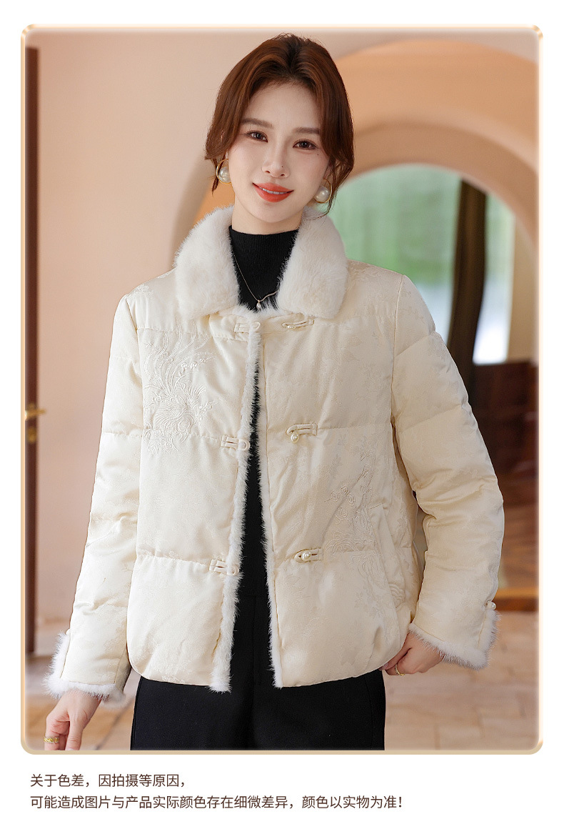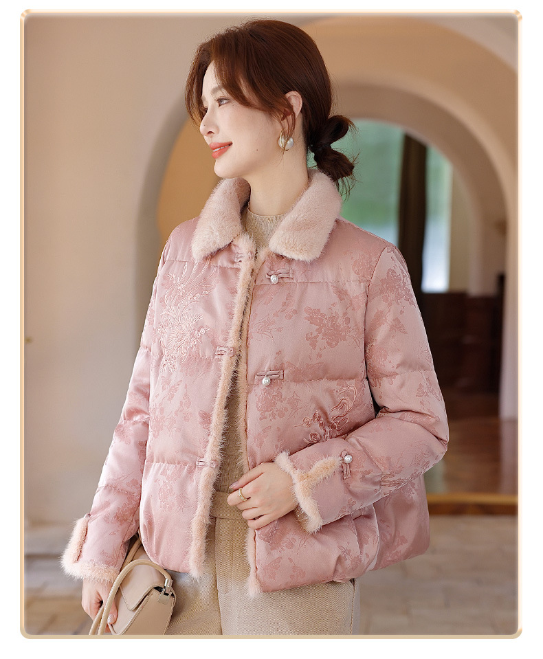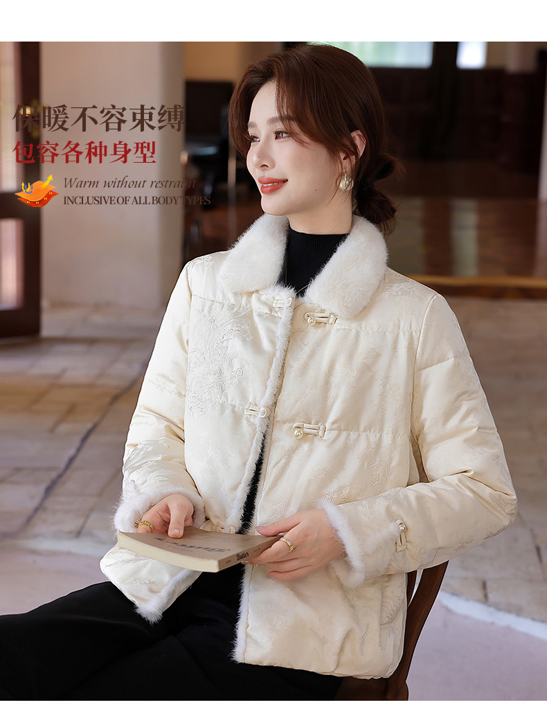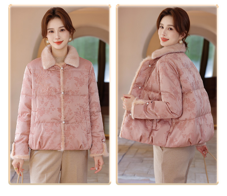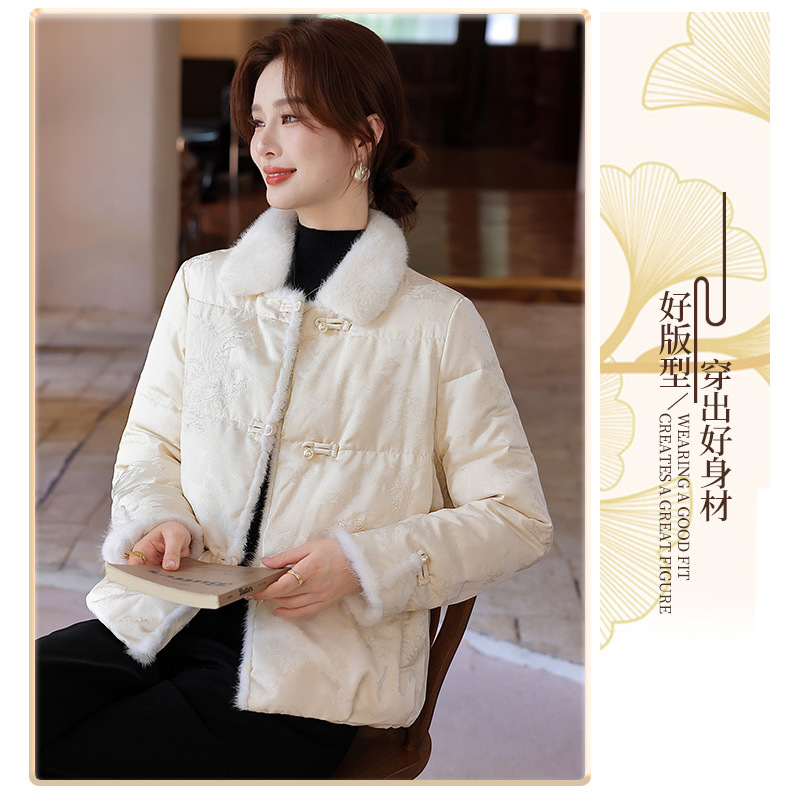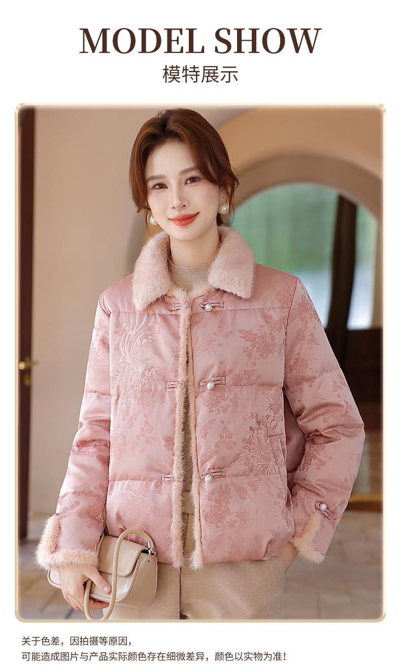 新中式妈妈水貂毛拼接国风羽绒棉服中老年女冬季新款加厚棉袄外套