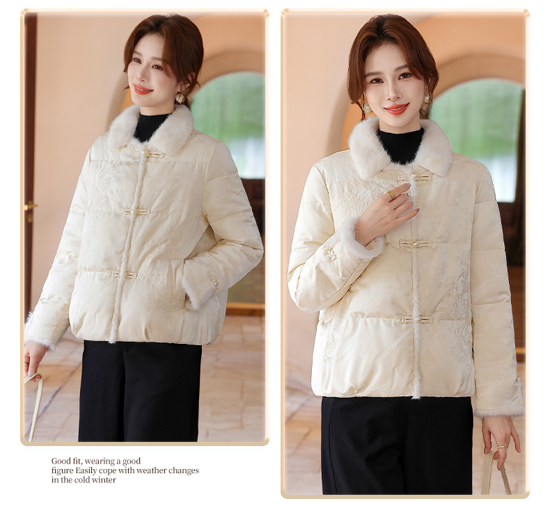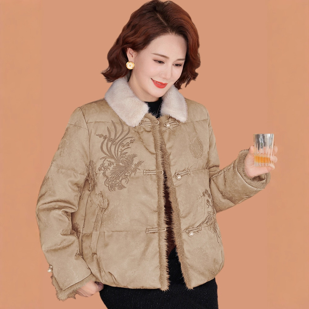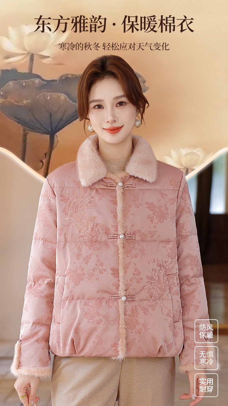 新中式设计盘扣国风妈妈冬季加厚毛领棉衣保暖棉服外套棉袄女外穿