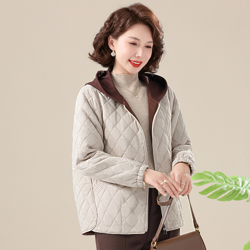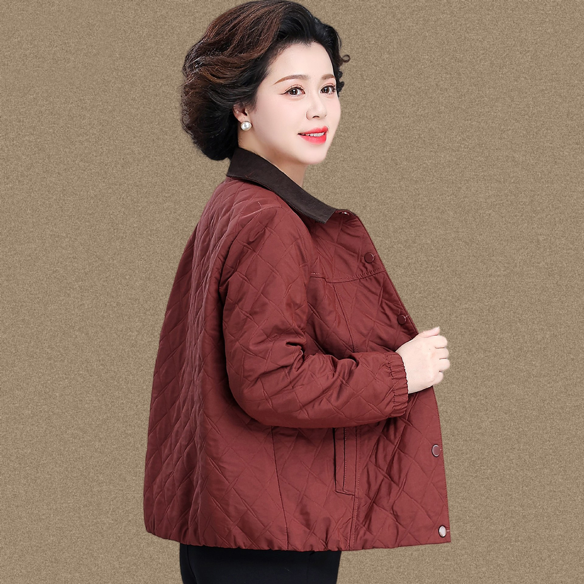 中年のお母さんの春の服のコートの洋風の上着の2025新型の中高年の女性の春秋の短いタイプは綿のファッションのジャケットを挟みます。