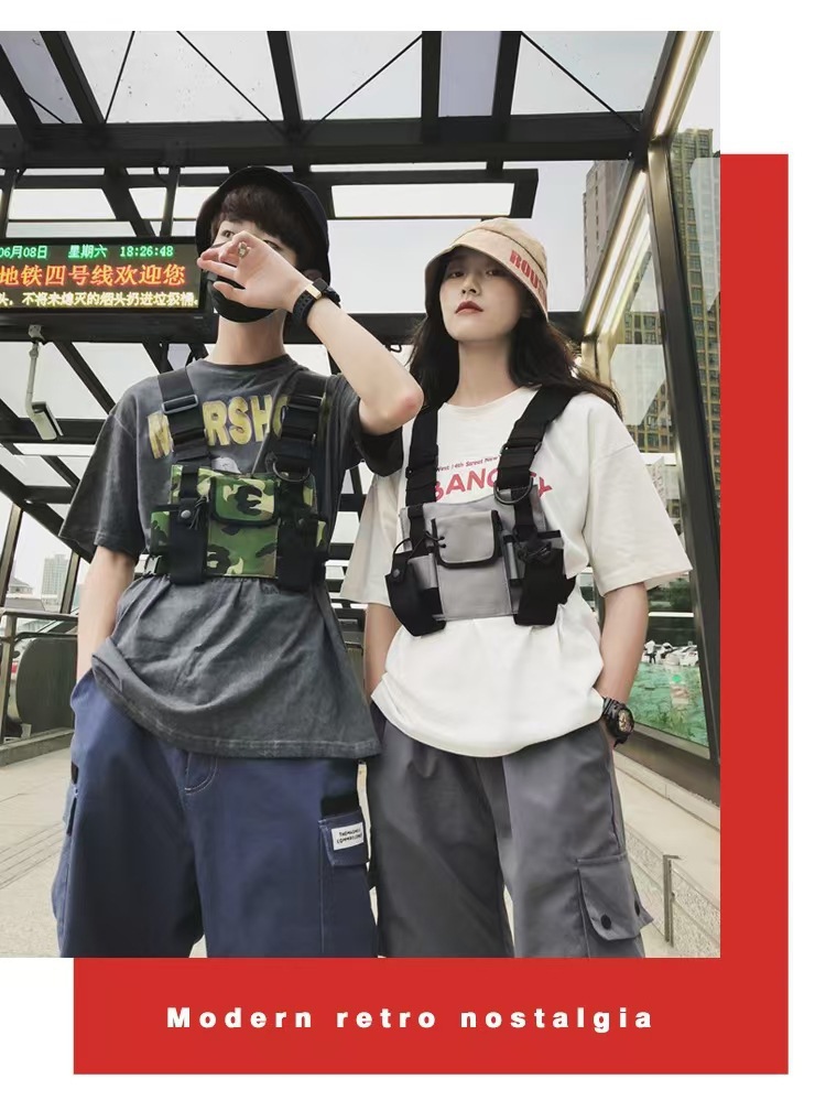 男女多功能胸包ins男女嘻哈战术背心潮牌工装马甲式背包战术胸包