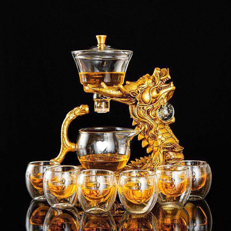 クリエイティブライト高級怠惰なティーセット自動ティーセット耐熱性と耐火性ガラス磁気ティーポットカンフーティーセットコンプリートセット
