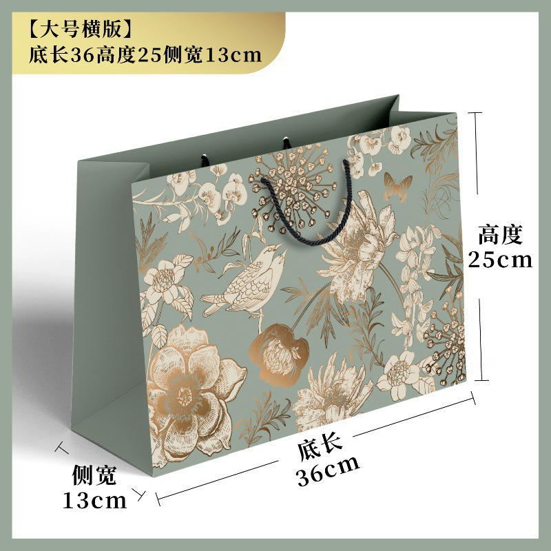 ライト高級レトロゴールド花鳥ギフトバッグ高級衣料品店特大厚みのあるポータブルショッピングバッグ紙袋