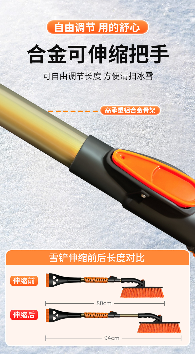 雪铲车用汽车除雪铲可拆卸雪铲雪刷铁锹冰铲软胶硅胶铝合金可伸缩