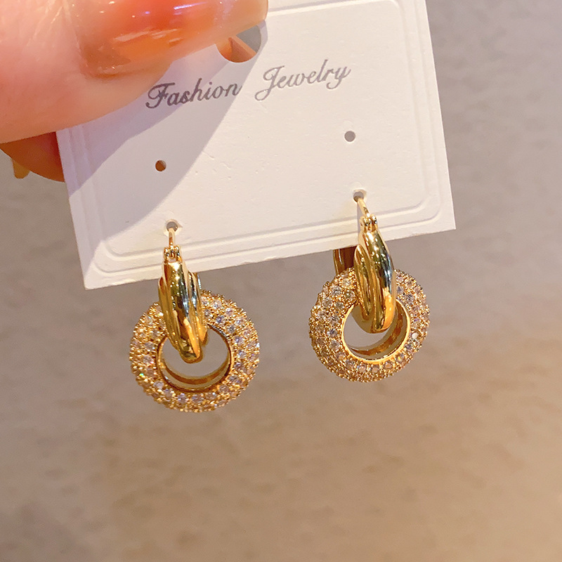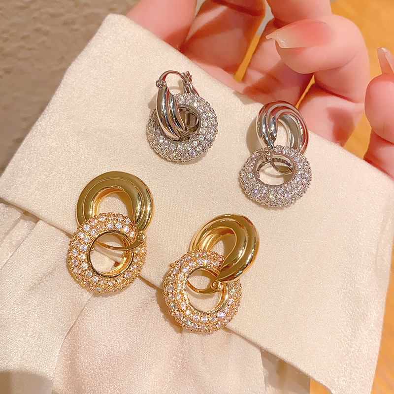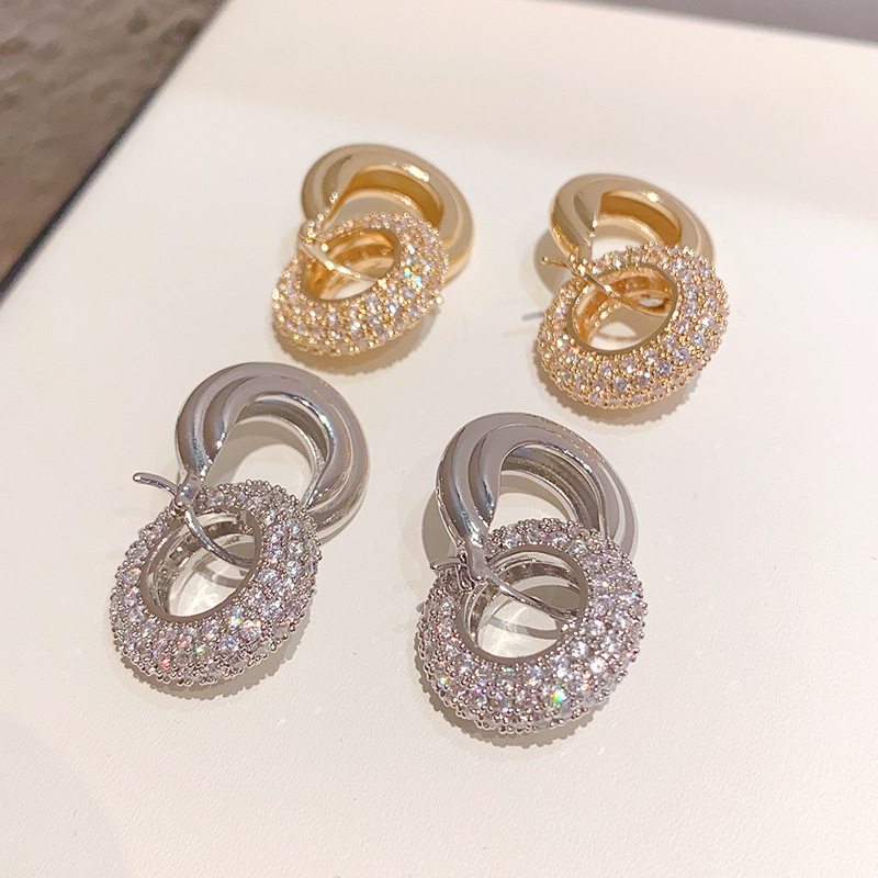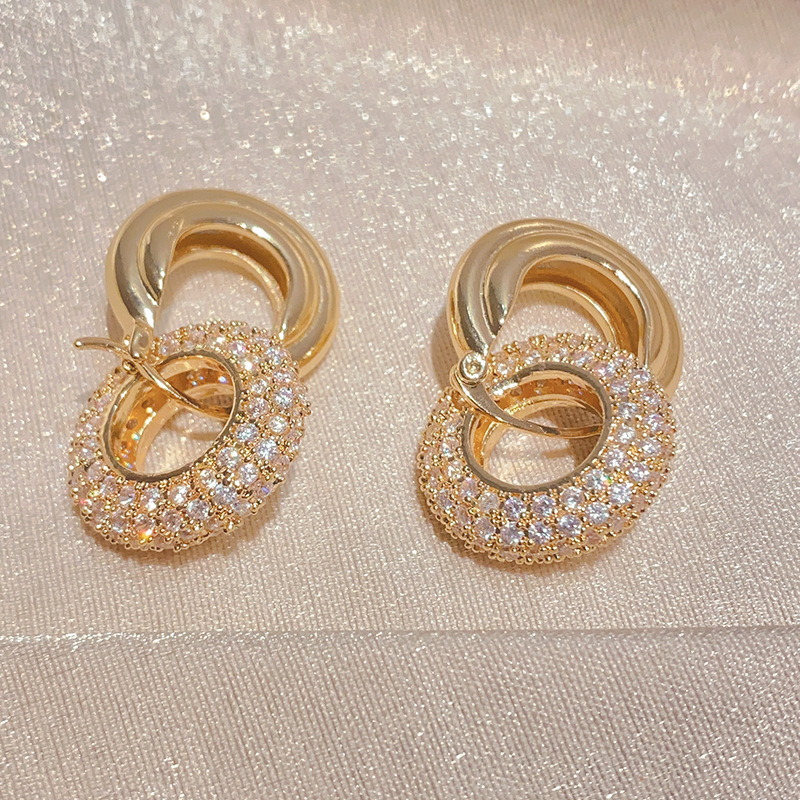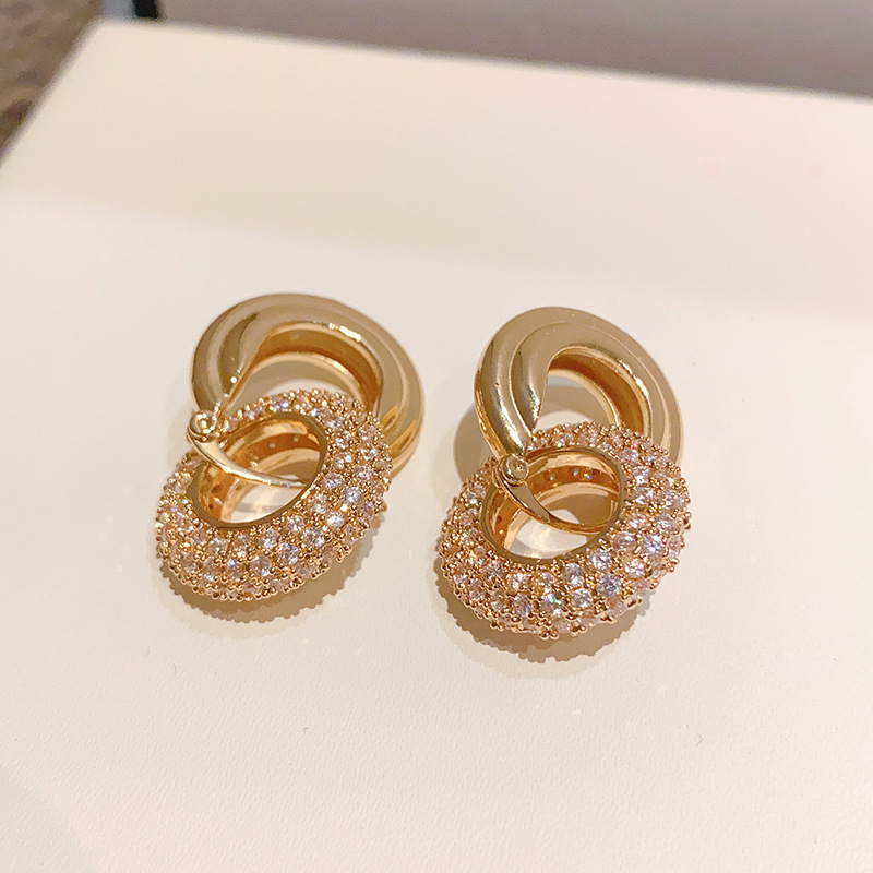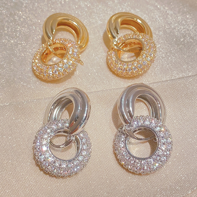 欧米の国境を越えてジルコン18k金双環メッキ円高級感イヤリングアクセサリーのイヤリングは耳輪の女性を誇張している