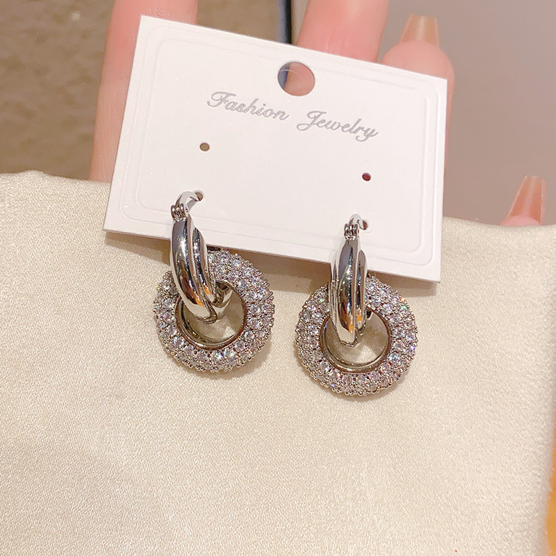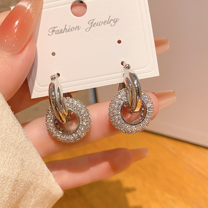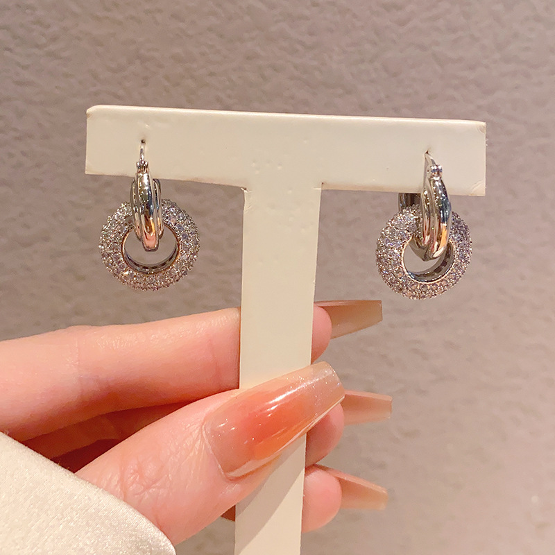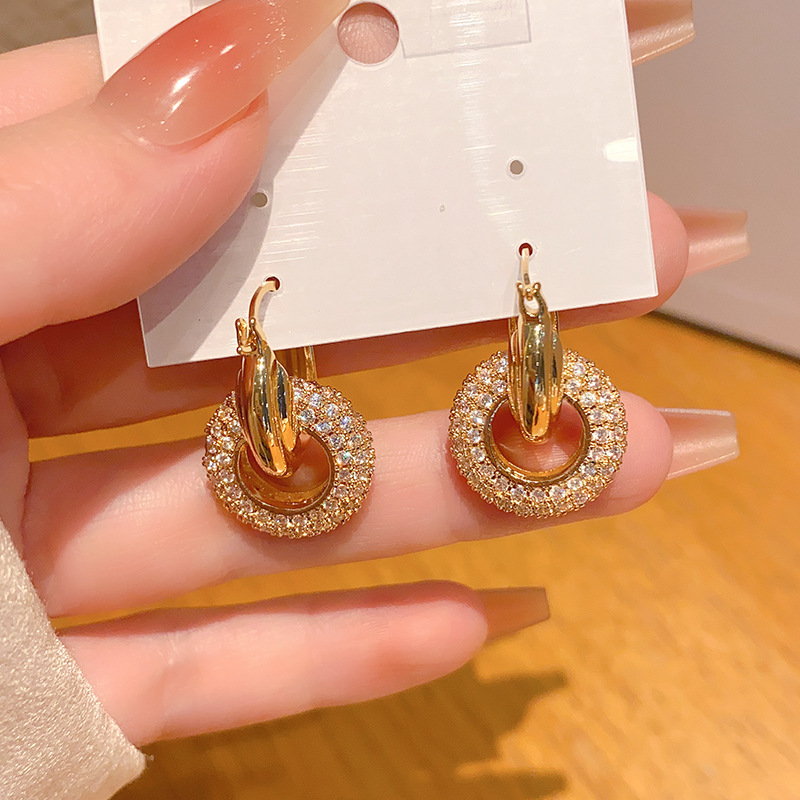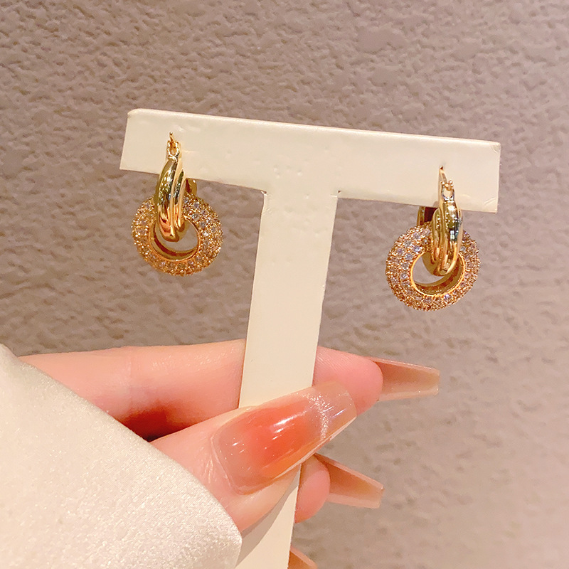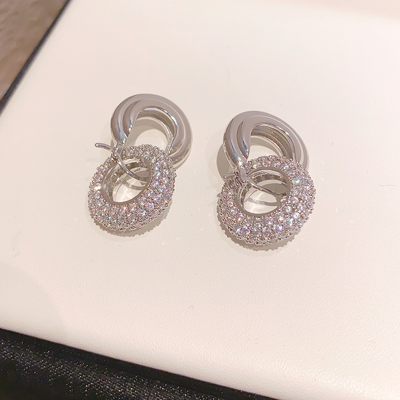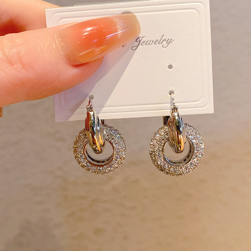 欧米の国境を越えてジルコン18k金双環メッキ円高級感イヤリングアクセサリーのイヤリングは耳輪の女性を誇張している