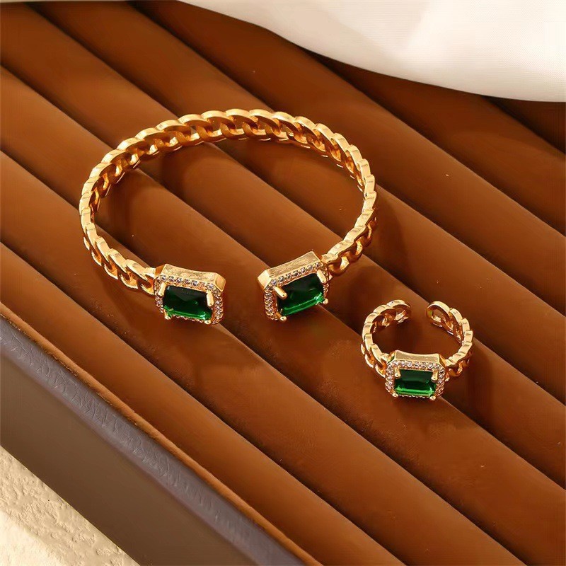 レトロ軽贅沢ファッション開口円形カラージルコンブレスレット指輪セット