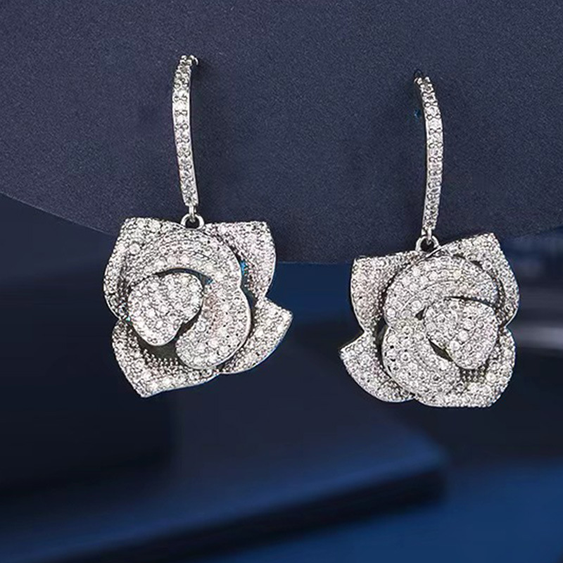 欧米のファッションの爆発物のジルコンの立体のツバキの花のイヤリングのバラの花のドレスはイヤリングのアクセサリーの卸売りを飾ります。