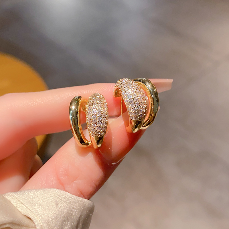 欧米の国境を越えた金属鎖銅のイヤリングメッキ18k真金軽贅沢高級感ジルコン耳飾り卸売り