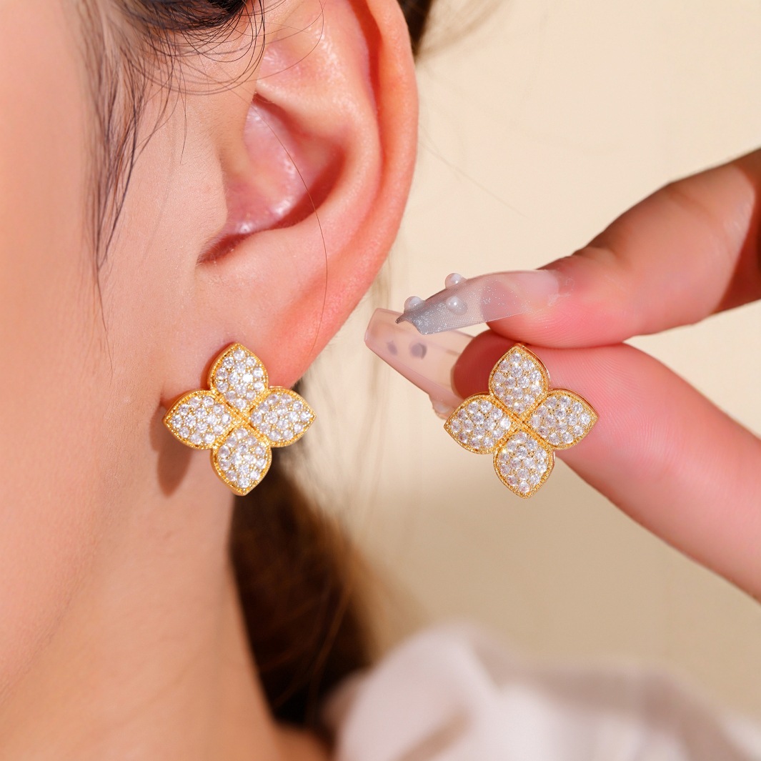 国境を越えて流行している潮女の古典的な百合宝飾品はジルコン925銀針が色を落とさない女性四葉草ピアス