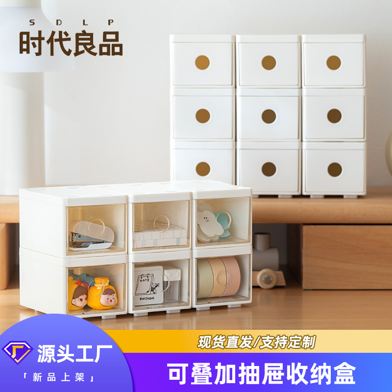 桌面手办收纳盒带抽屉可叠加杂物塑料盒子DIY展示柜学生宿舍好物