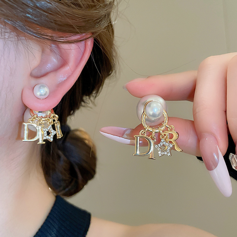 銀の針のジルコンの真珠のアルファベットのブタの鼻のイヤリングの軽い豪華な気質のイヤリングの精巧なファッションの耳飾りの大衆の高級感