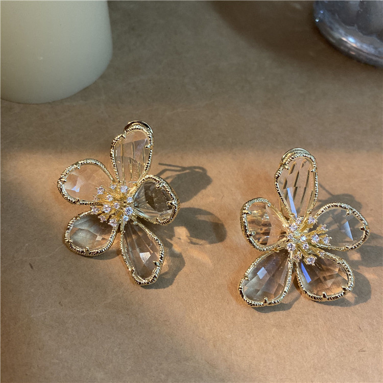 国境を越えた欧米のファッションの個性は、贅沢なアイデアの高級感を誇張して透明な多面ジルコンの花の大きなイヤリングになっている