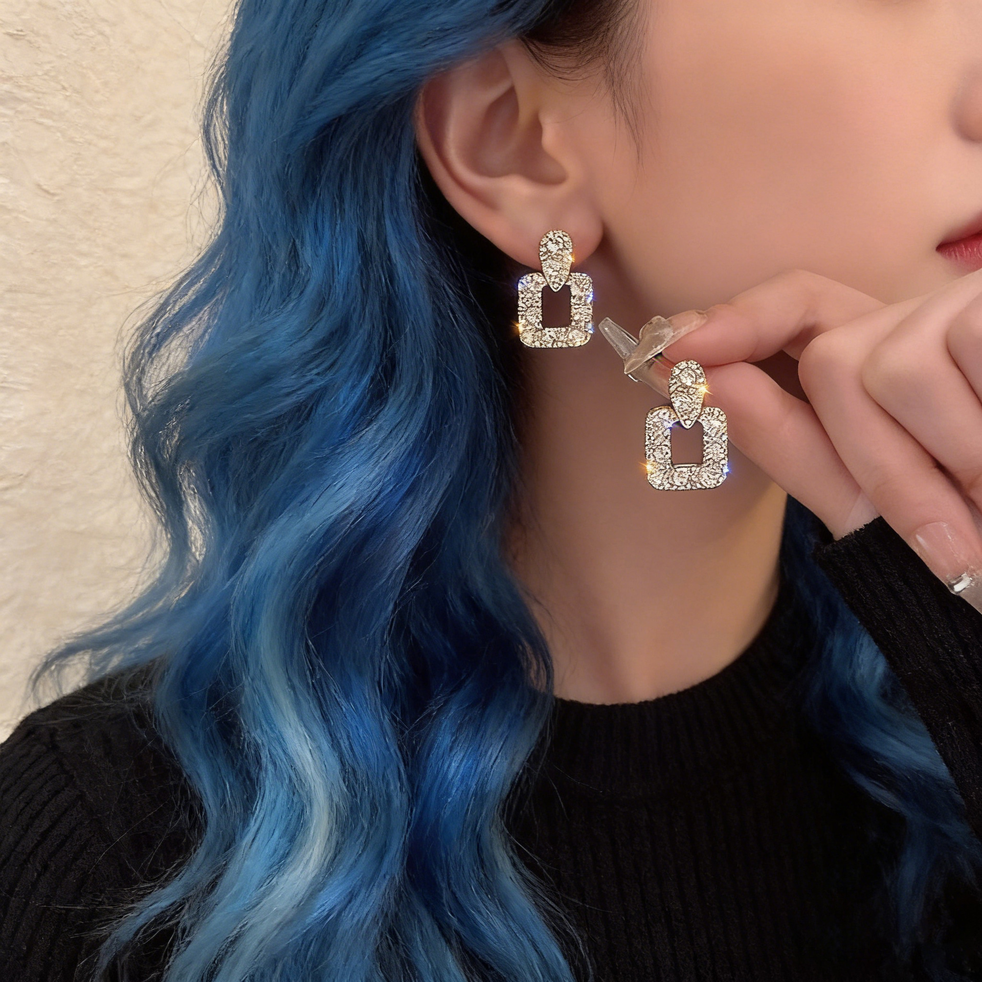 高级感微镶锆石方形耳坠几何耳钉下游新款气质轻奢小众设计耳饰女
