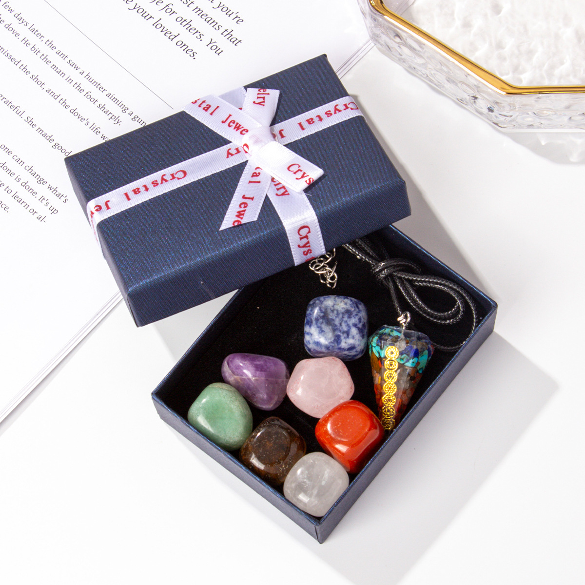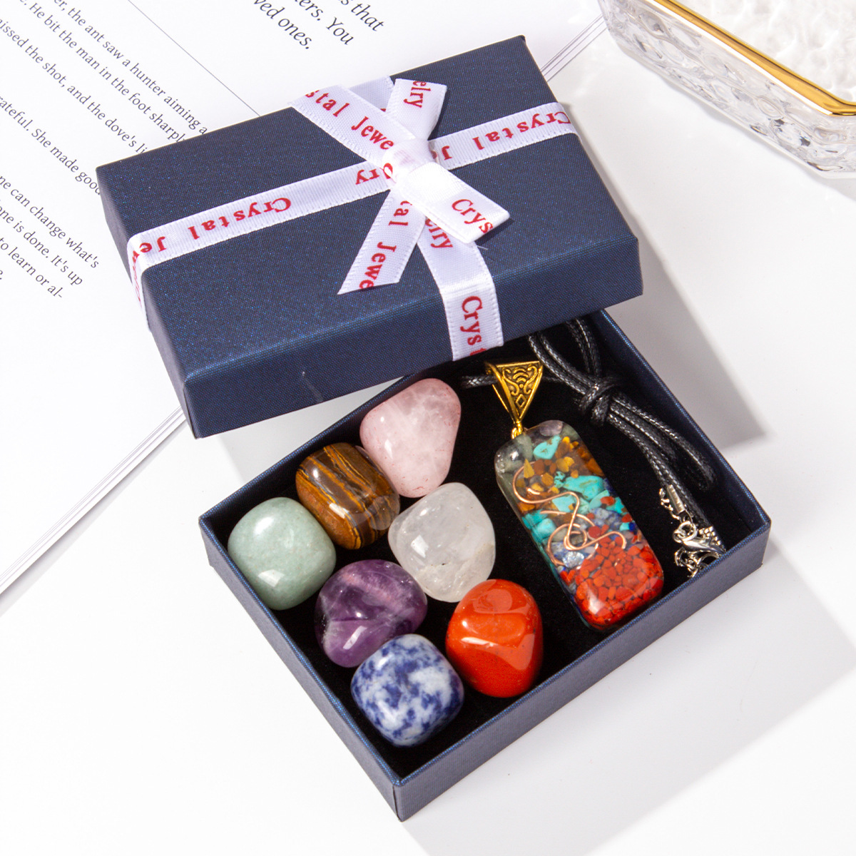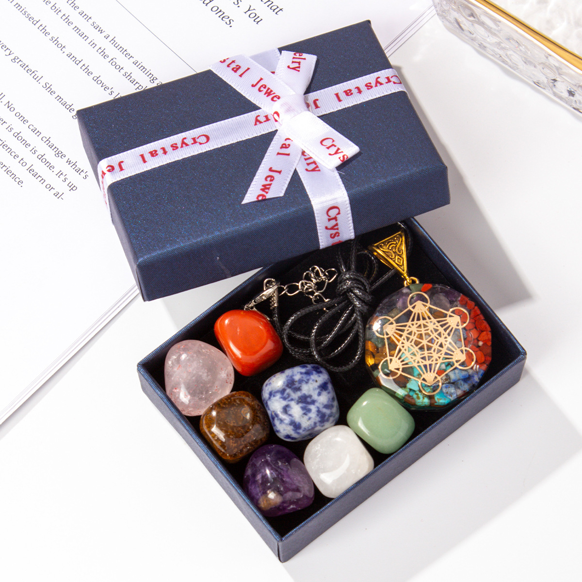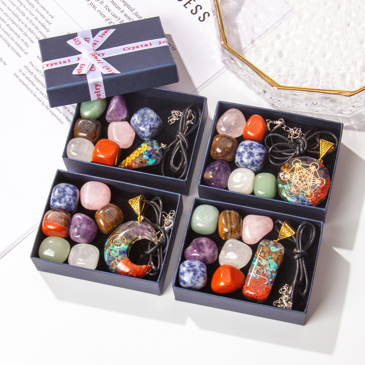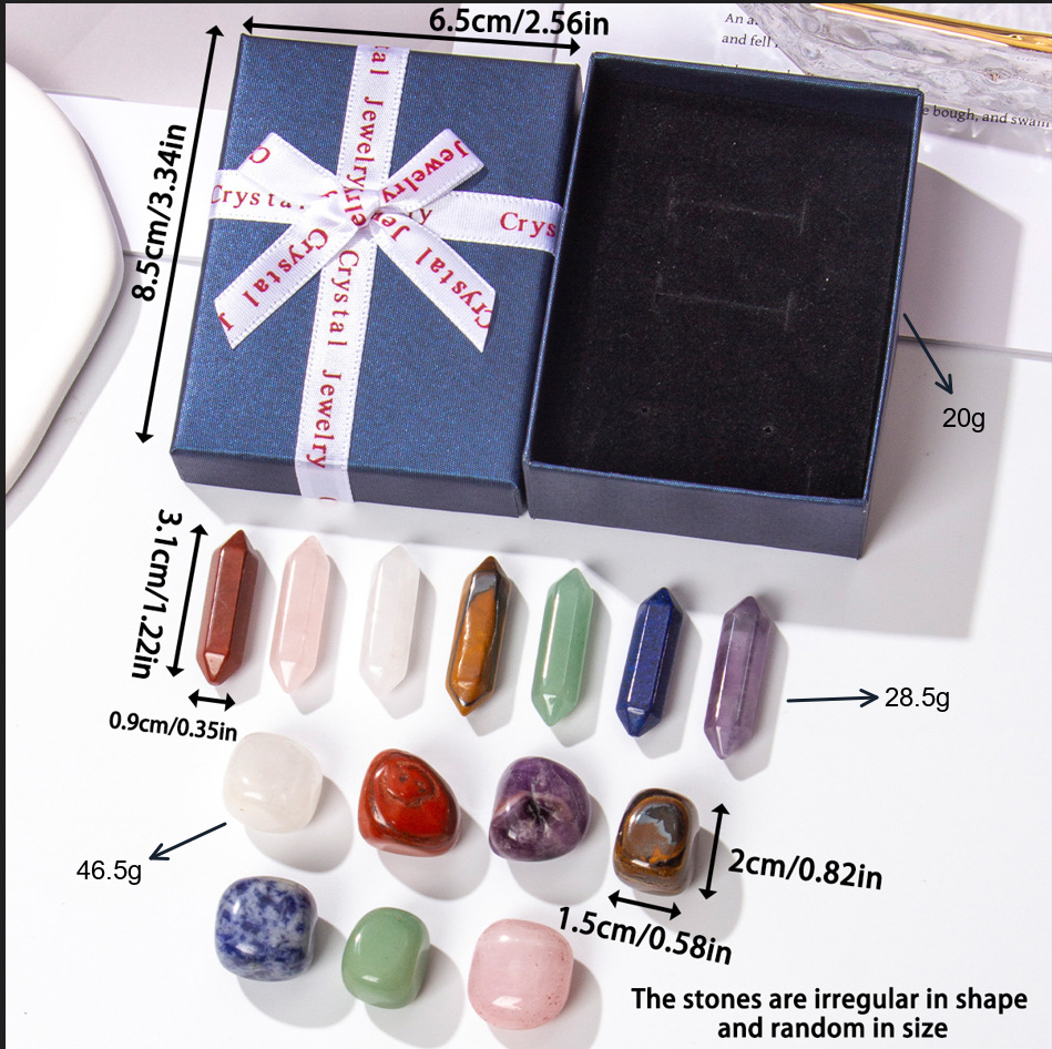 跨境爆款天然水晶礼盒套盒不规则七彩石滚石套装矿石标本摆件批发